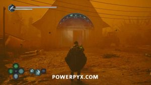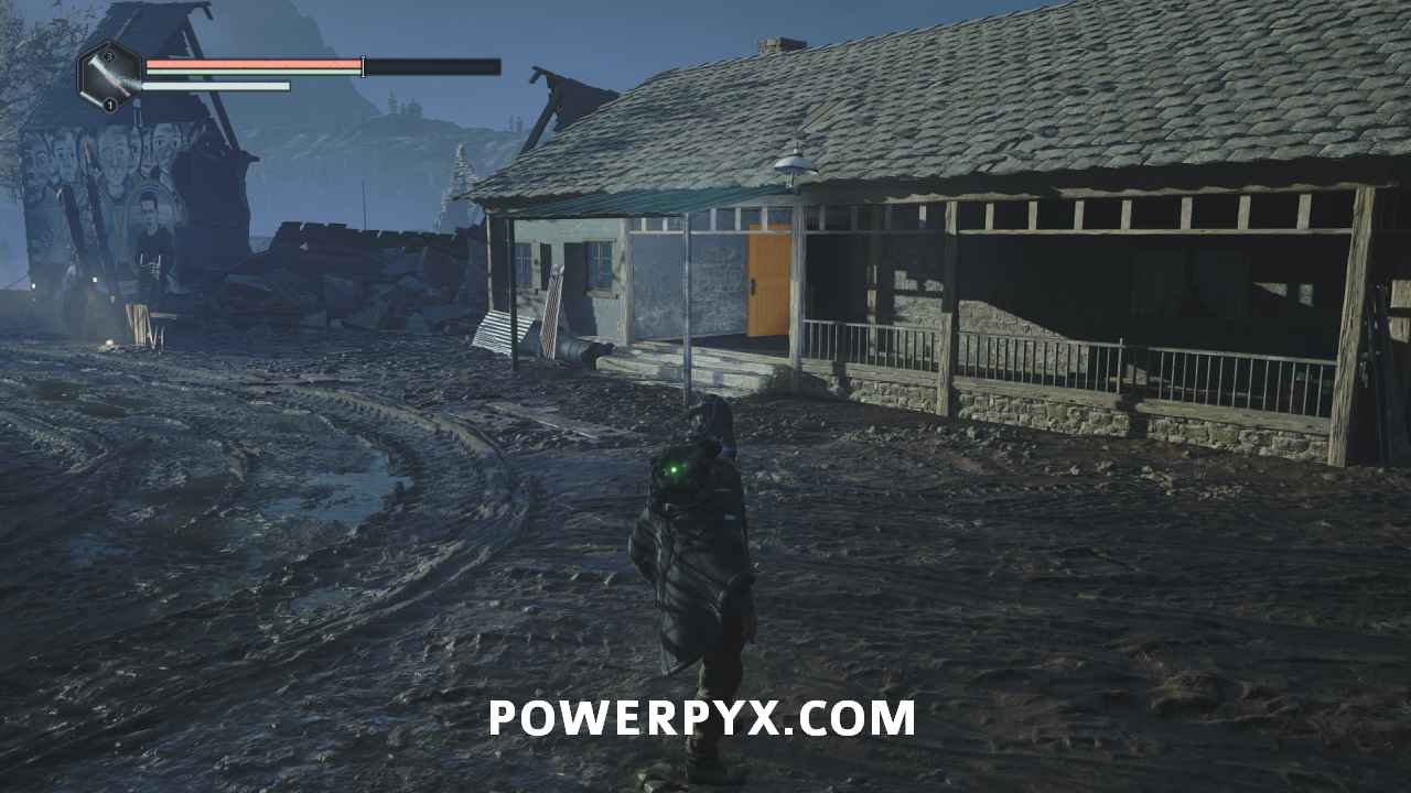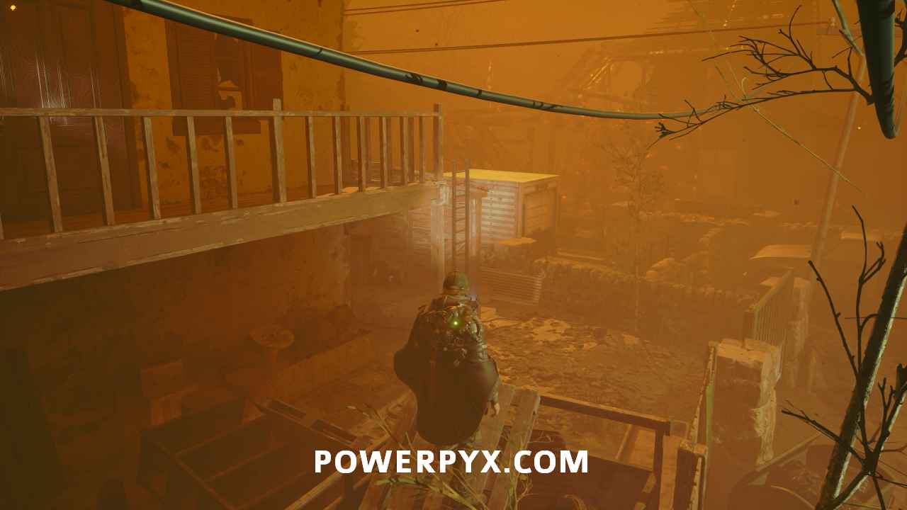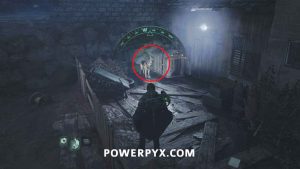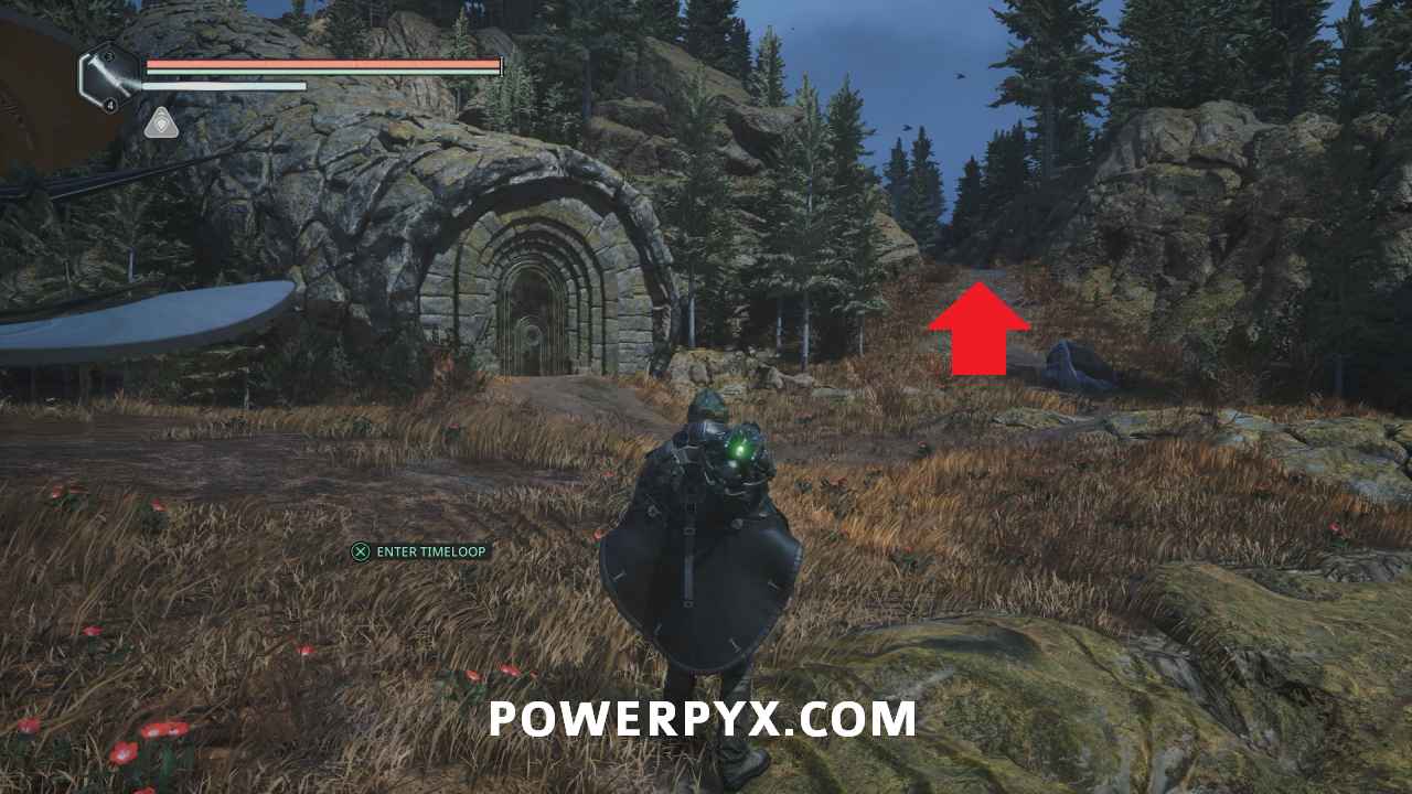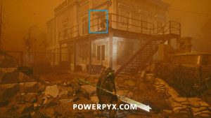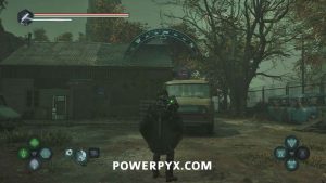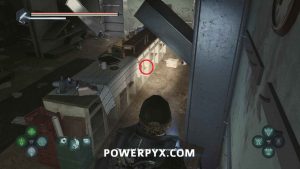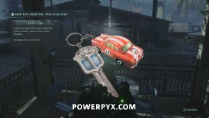 In the area go toward the church and out the back to defeat the Timeloop Guardian, then go to the right where you can climb up some scaffolding to the roof. Drop off the other side, then down to the road where you can pick up Keys – Crane.
