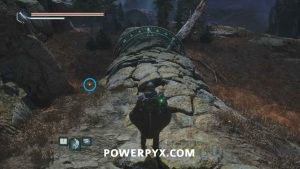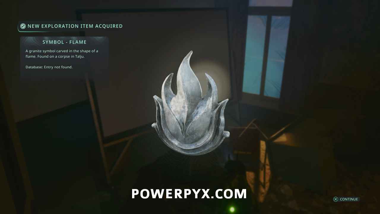 In Talju go to the west side of town to the Vanderlyn Trust building (3 on the map Juven gives you) and go around the back, through the unlockable gate and up the stairs inside. Kill the three Hollows, then in the room at the end of the hallway you can pick up the Symbol – Flame off the ground along with Map – Senedra Mountains which starts this good deed.