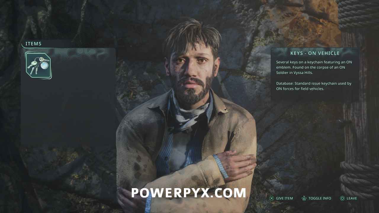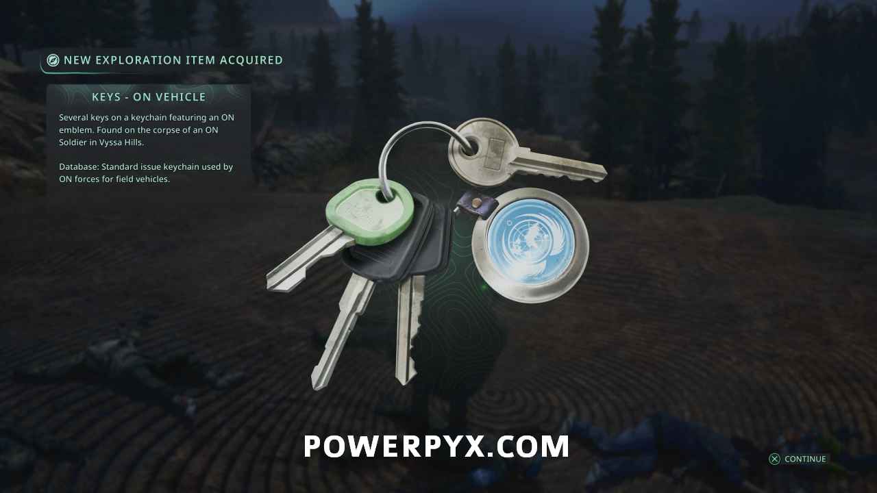 Close Timeloop – Vyssa Hills then pick up the item that appears on the ground after the Timeloop disappears to receive Keys – ON Vehicle starting this good deed.