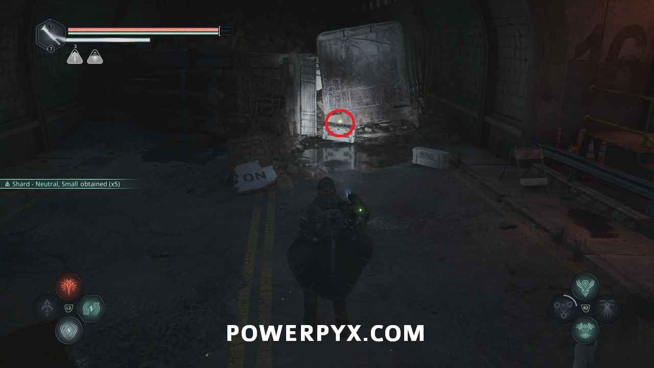 Continue west to Vanderlyn Trust building (3 on the map Juven gives you) and go around the back, through the unlockable gate and up the stairs inside. Kill the three Hollows, then open the door and trade the woman a Signal Flare.