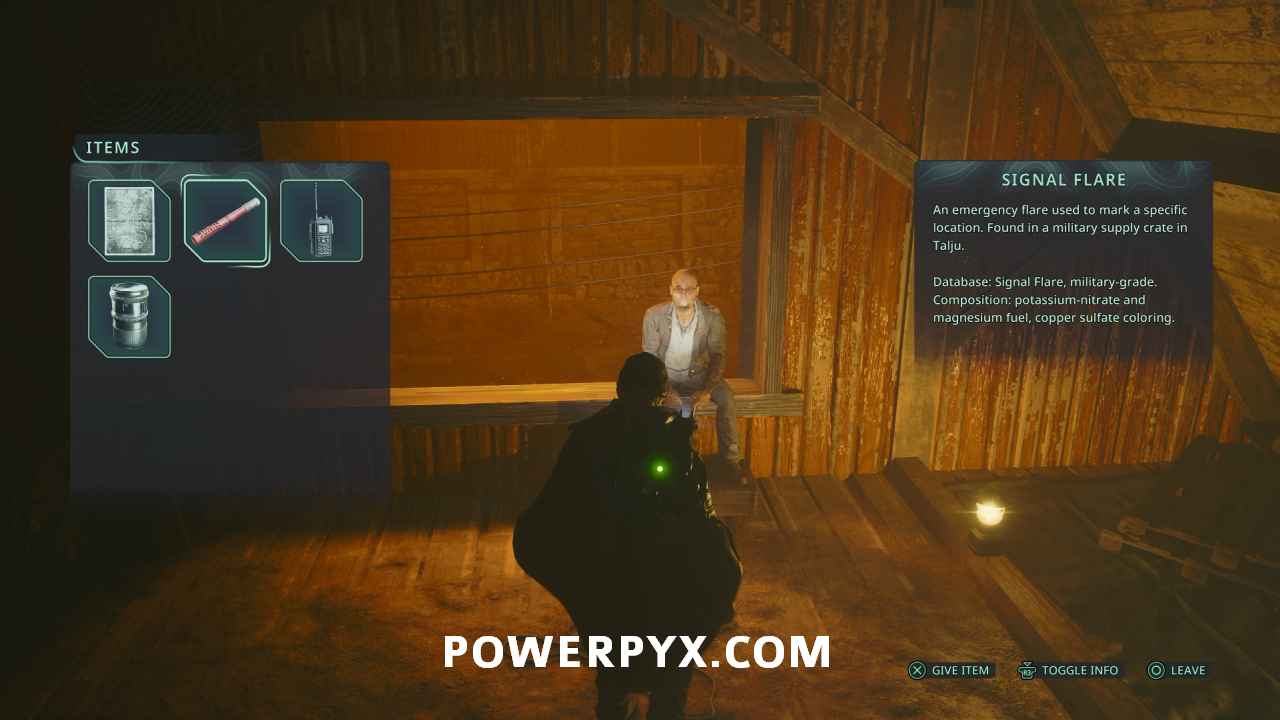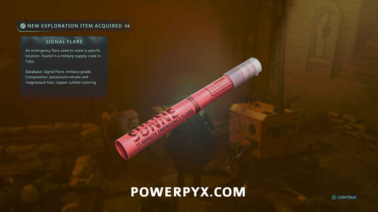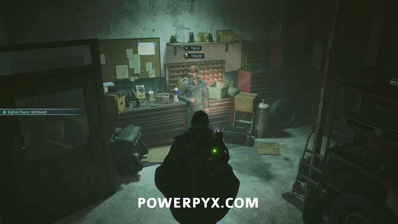 Go back to the garage near the NPC where Boro Juven is located and trade him one of the Signal Flares.