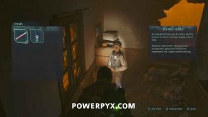 In Talju, you first need to obtain the keys for the Pharmacy building. Go to the southwest corner of town where the playground is. Turn around from the swings and go up the stairs toward the big tree. On a body on the railing you can pick up Keys – Pharmacy.