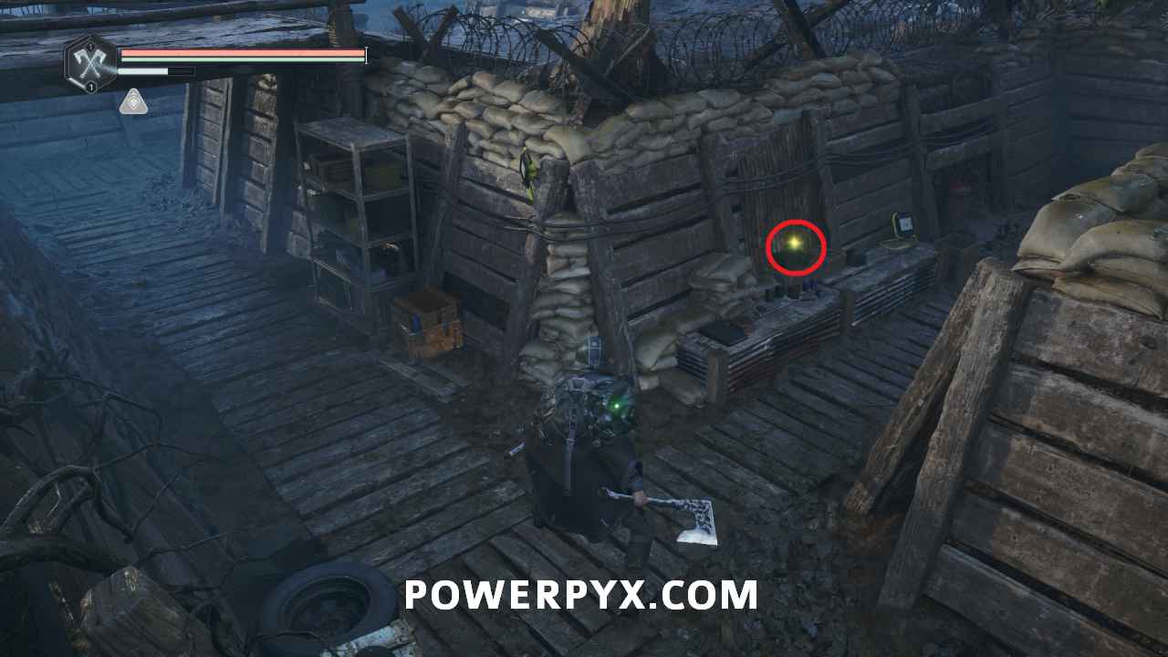 After progressing through the ruins you enter a trench area. Continue through the trench area and on the left you can find an interact point that gives Letter – Sabinian Front and a Gold Watch, starting this good deed.