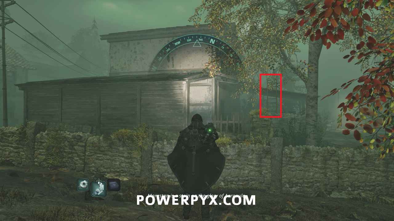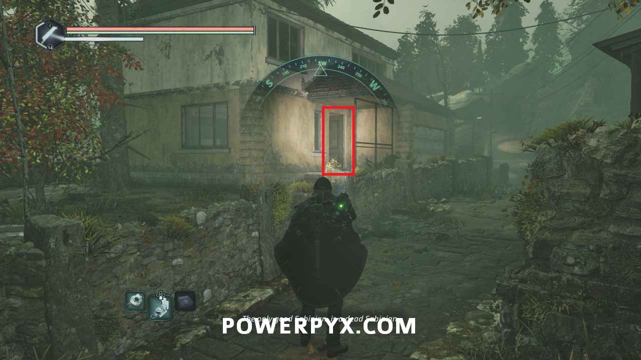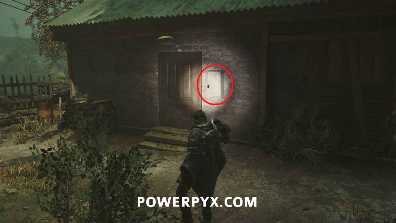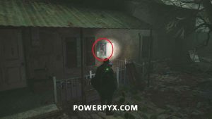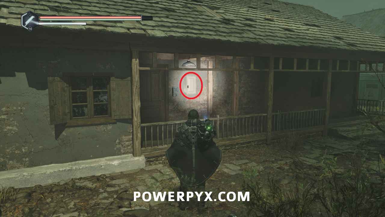Go behind the house northwest of where you picked up the fuses where you can find a fuse box on the back wall. Open it and insert one of the Fuses.
