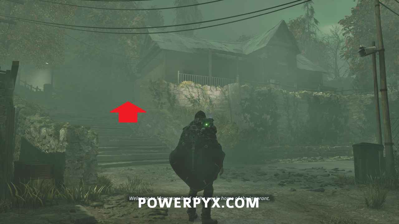 Go opposite the door to the town hall and continue walking east around the two houses where there is a ramp in front of the second one that allows you to reach a ladder (and a gate you can open back to the street). In the hallway of the house you can find a woman, trade her one of the Signal Flares.