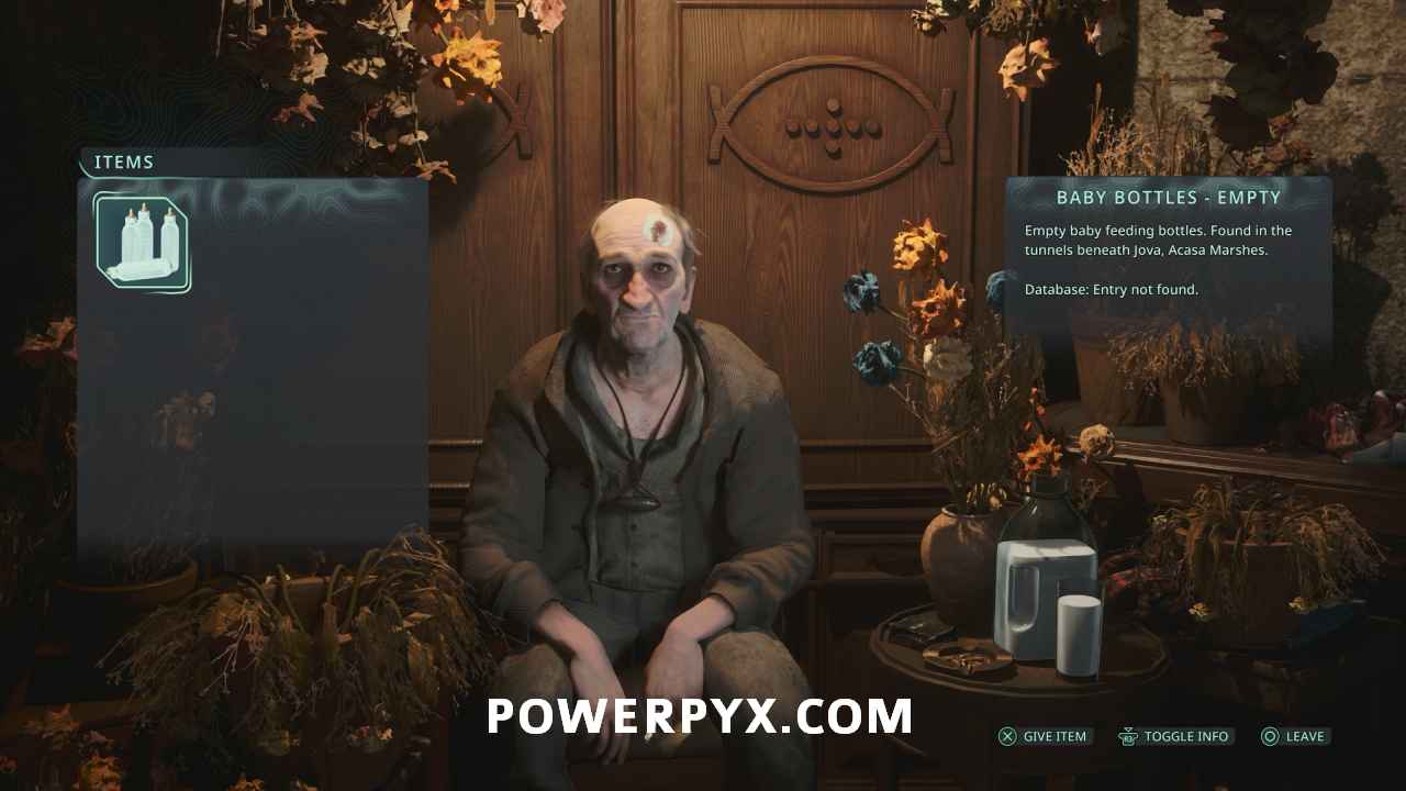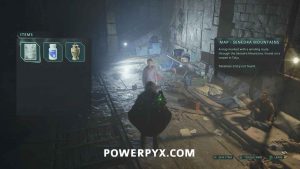 Go out the southwest side of town to find a house with white graffiti on the side. Go into the underground area through the opening on the side of the house. After dropping down the first ladder go left at the split and drop down again to find a lady with a baby. Pick up the Baby Bottles – Empty from the spot near the entrance to the room she is in to start the good deed.
