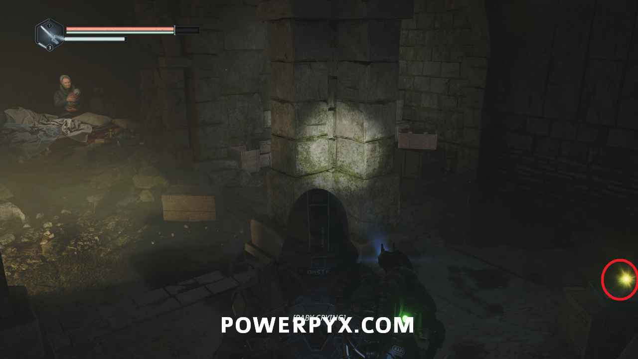 Follow the story path into the cave leading to the statue, and follow it on the left to a point where you can drop down toward the radio tower. Interact with the box at the bottom and use Key – Antenna to open it, then interact again to turn it off, completing this good deed.
