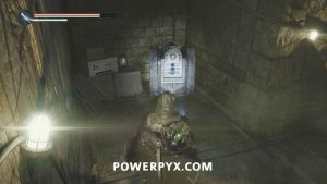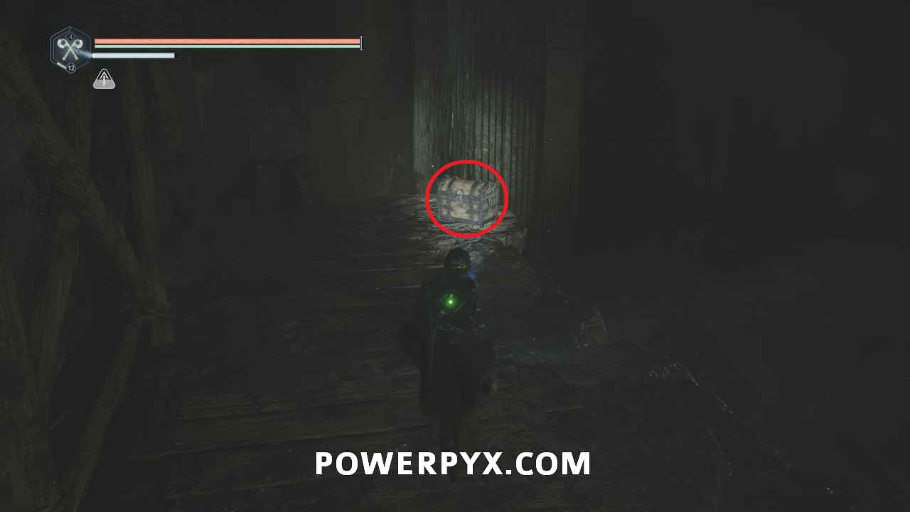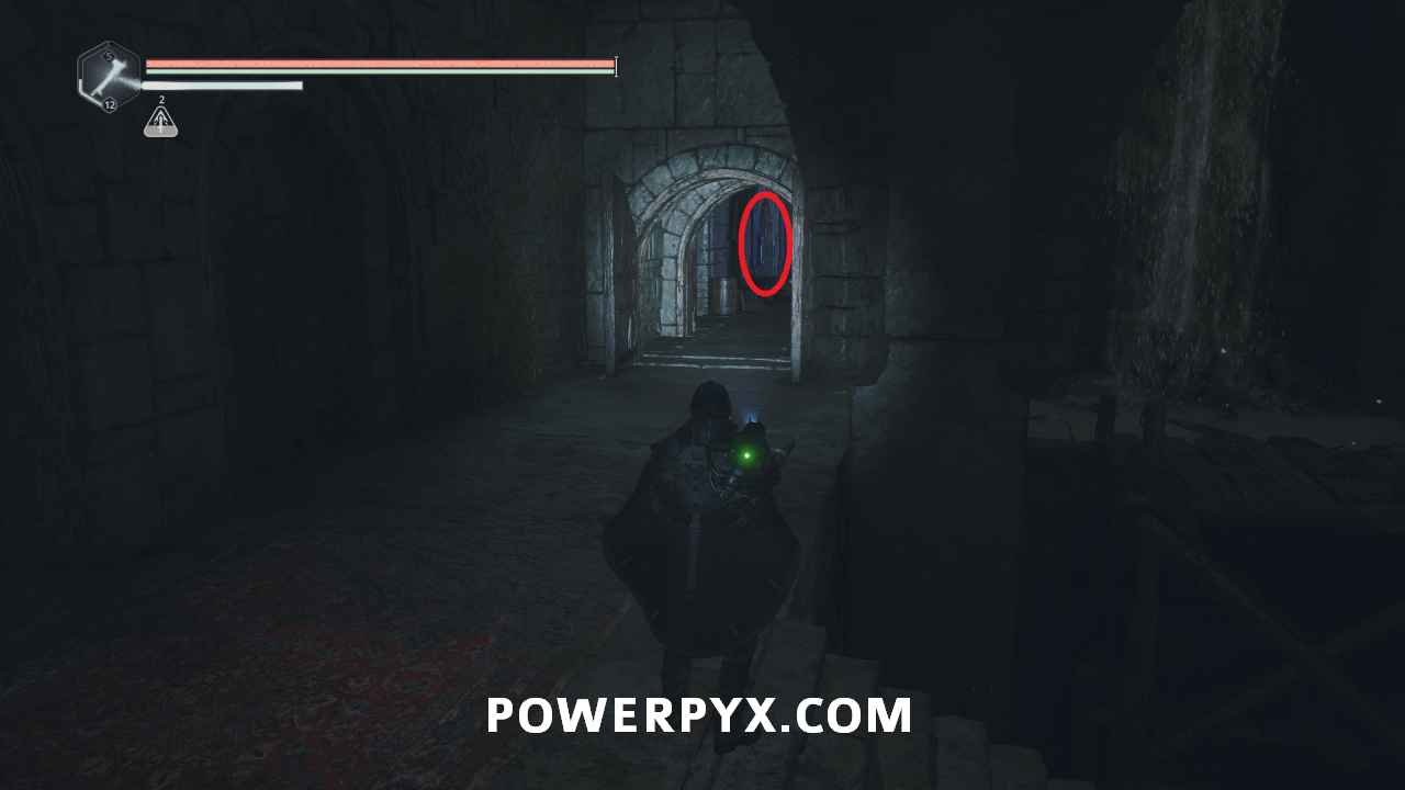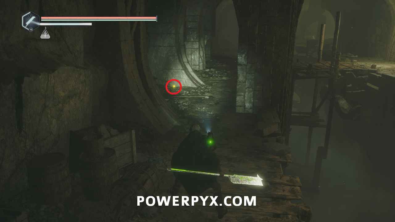 On the main path just after the room with the first pressure plates, ontinue through the door into the next area where there is a split in the path. Go east and then right into the hallway, where the is a ladder you can climb to a platform with a lever. This lever opens the door beside you, and the one across where the ranged enemy was located. Go back down and across to the other side of the area and climb the two ladders to reach the platform with the enemy, then drop off the left side. Follow the path and go right of the stairs until you reach an area with a bunch of enemies. Across the wooden bridge and then left you can pick up Key – Rusted which starts this mystery.