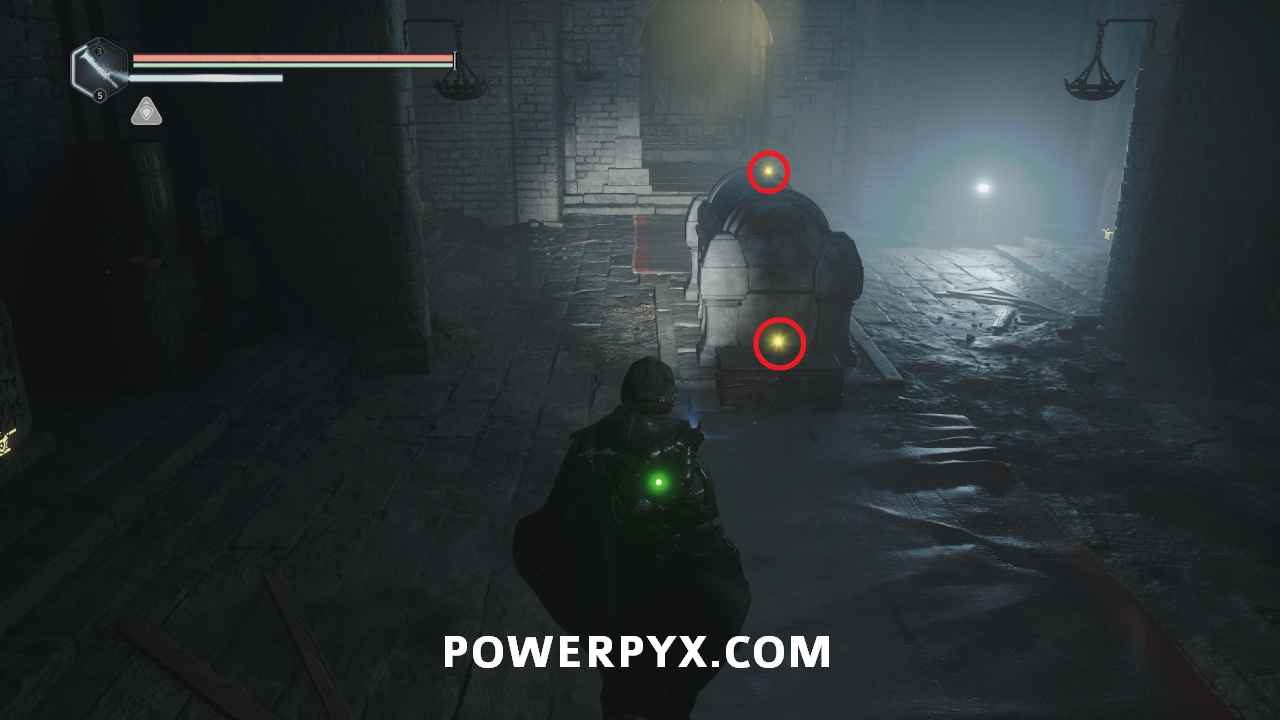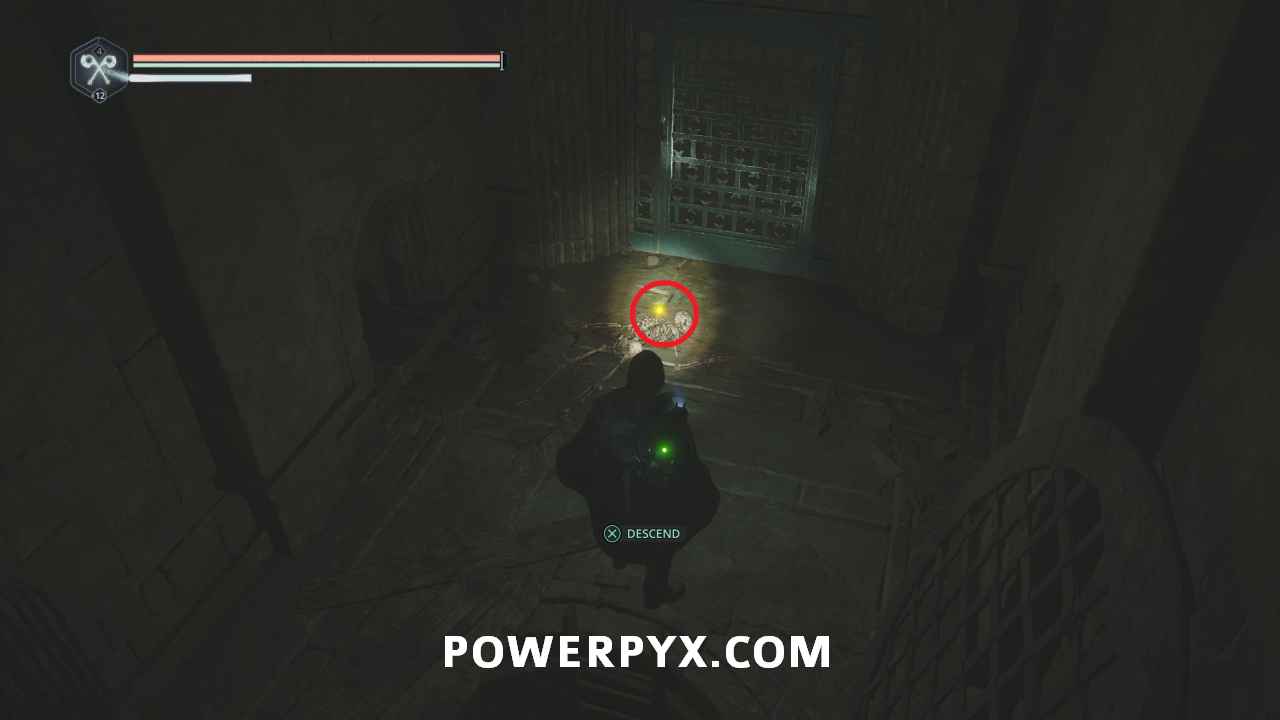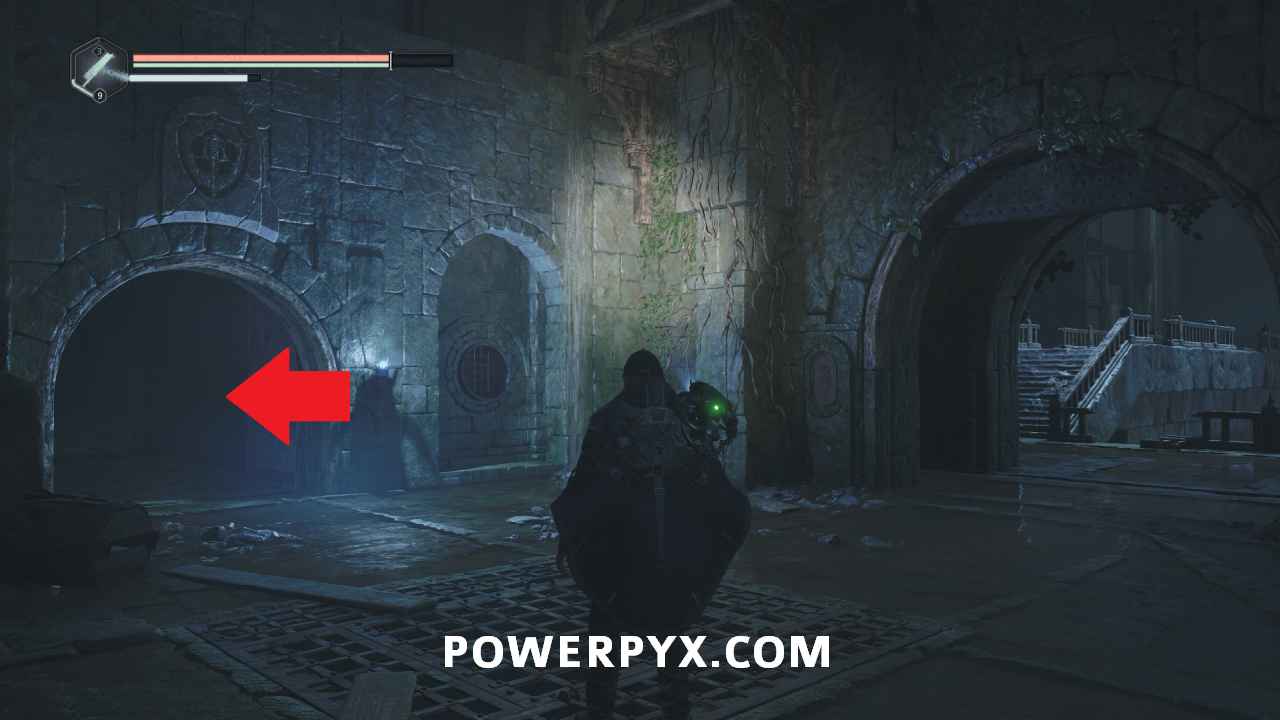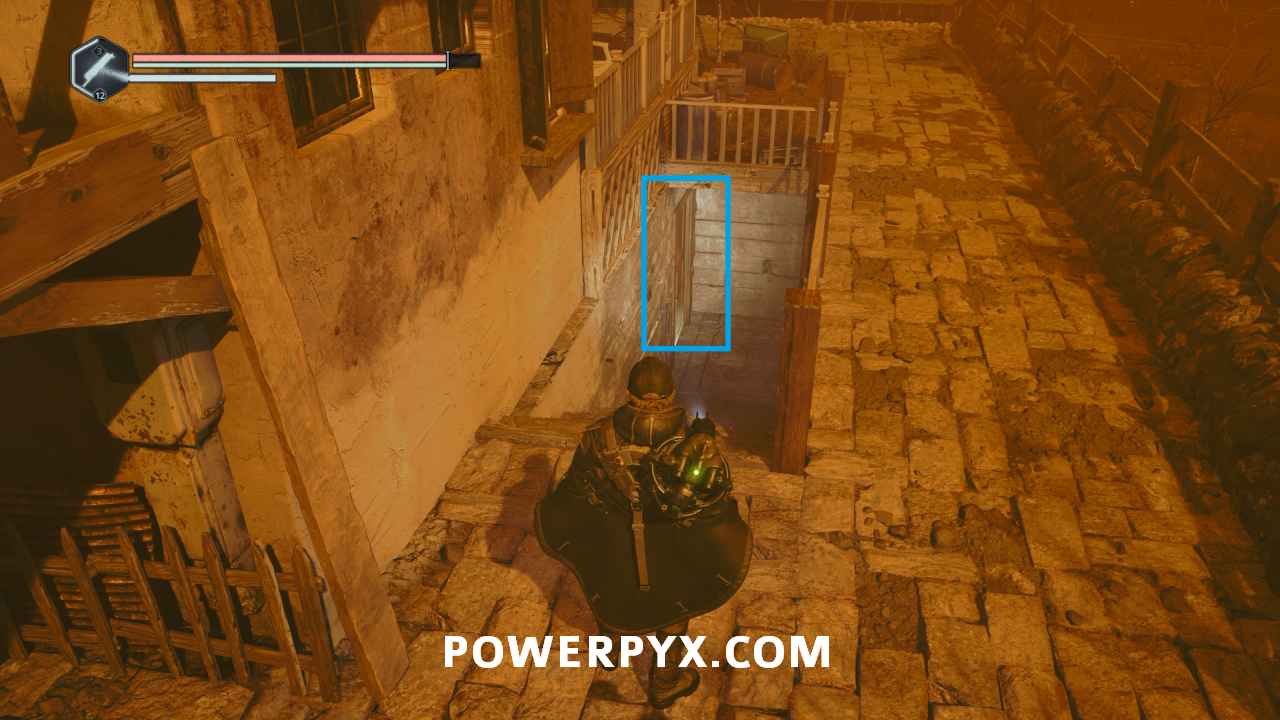 On the main path just after the room with the first pressure plates, ontinue through the door into the next area where there is a split in the path. Go east and then right into the hallway, where the is a ladder you can climb to a platform with a lever. This lever opens the door beside you, and the one across where the ranged enemy was located. Go back down and across to the other side of the area and climb the two ladders to reach the platform with the enemy, then drop off the left side. Follow the path and go right of the stairs until you reach an area with a bunch of enemies. Across the wooden bridge and then left you can pick up Key – Rusted which starts this mystery.