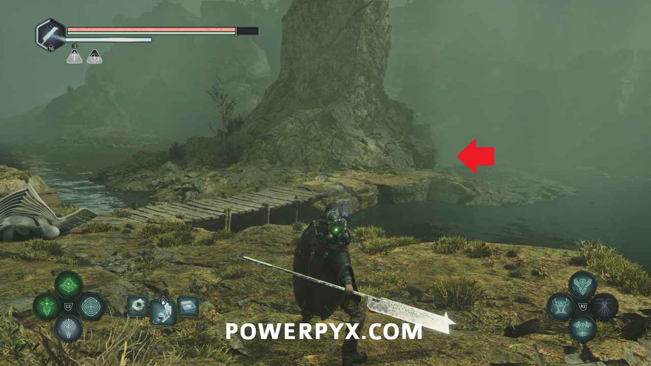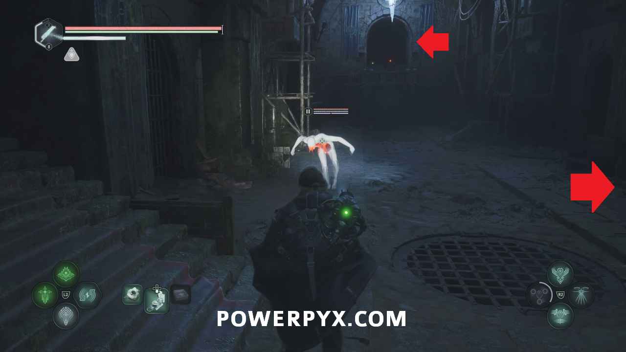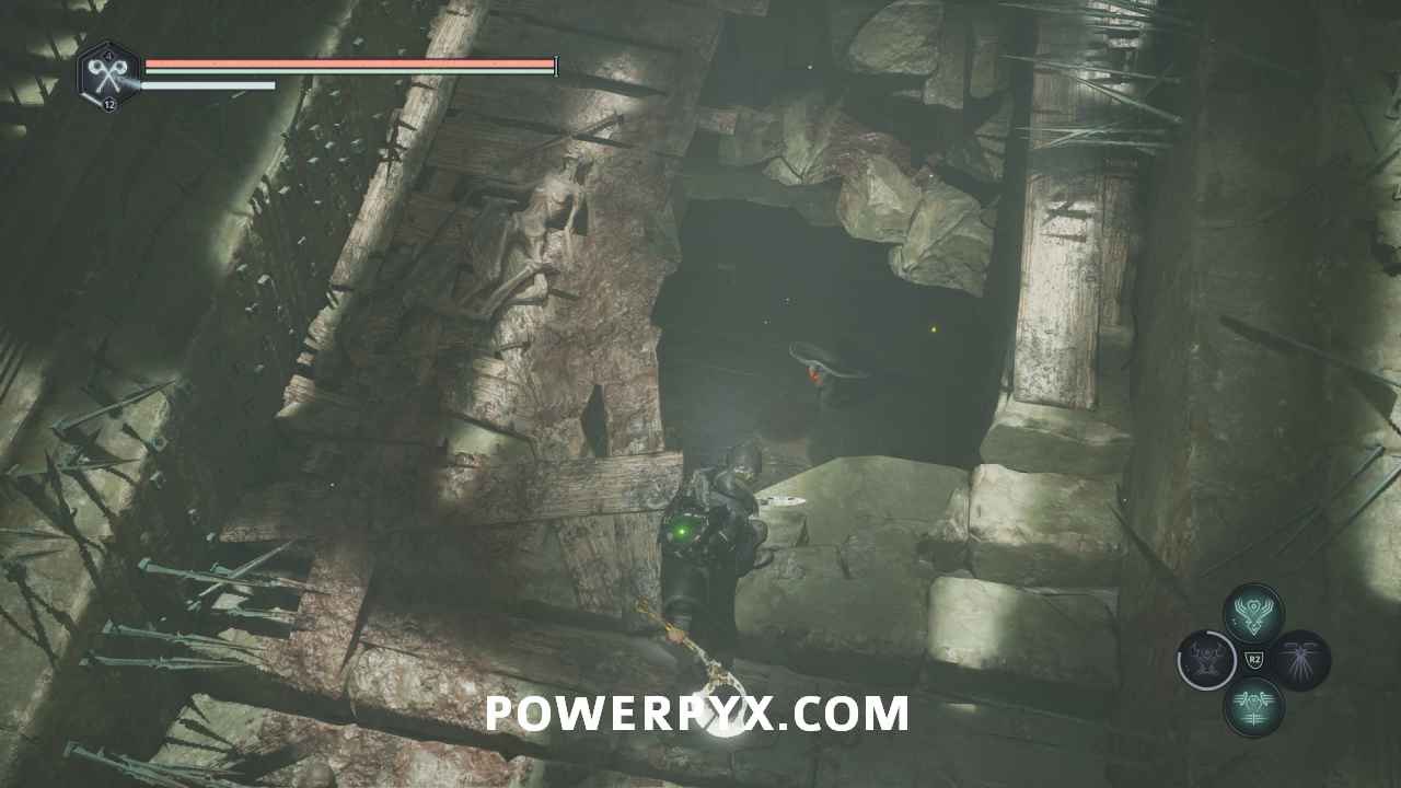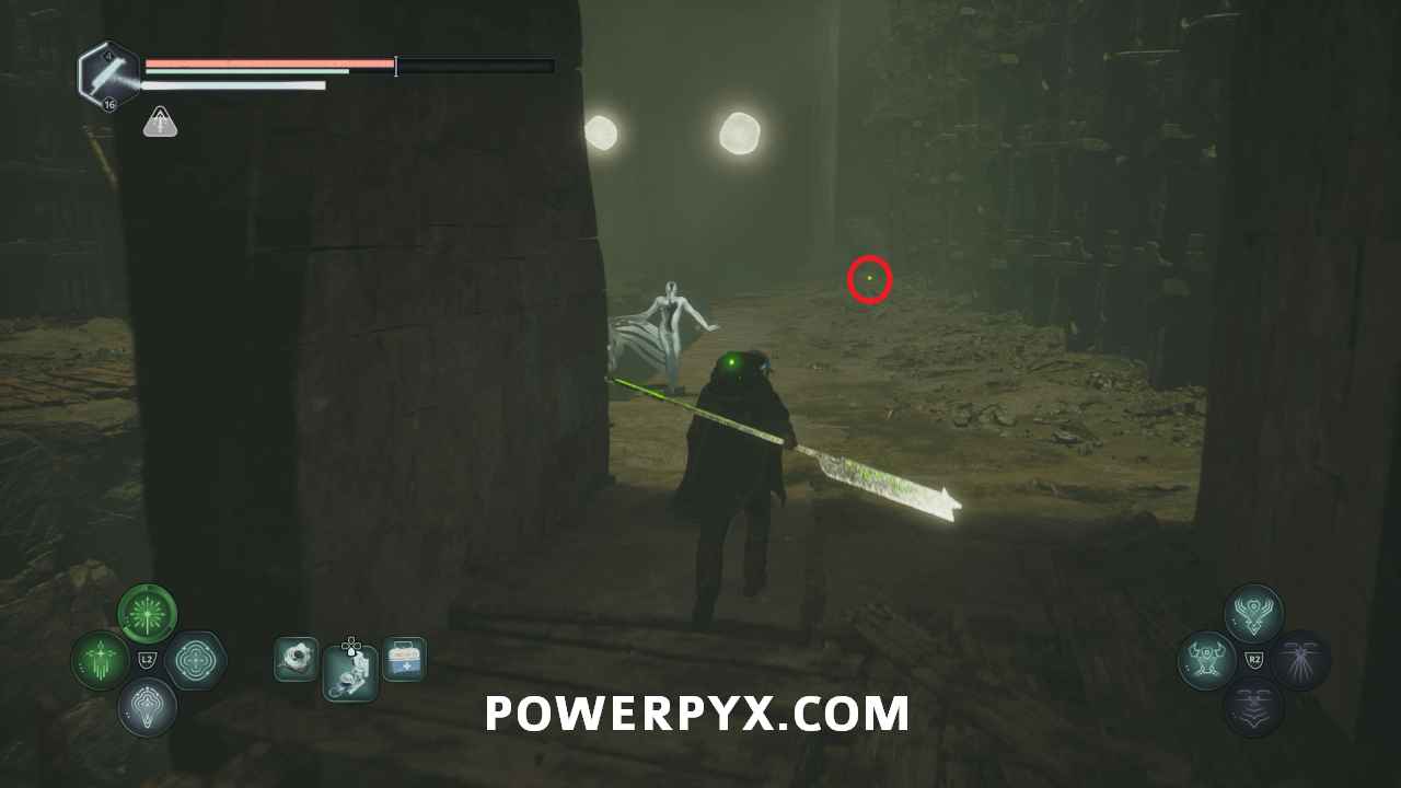 Follow this path into the next area where the red-lit structure. Past the enemies on the right you can pick up Lymbic Rod – Grief, V and Note – Cryptic Maxim.