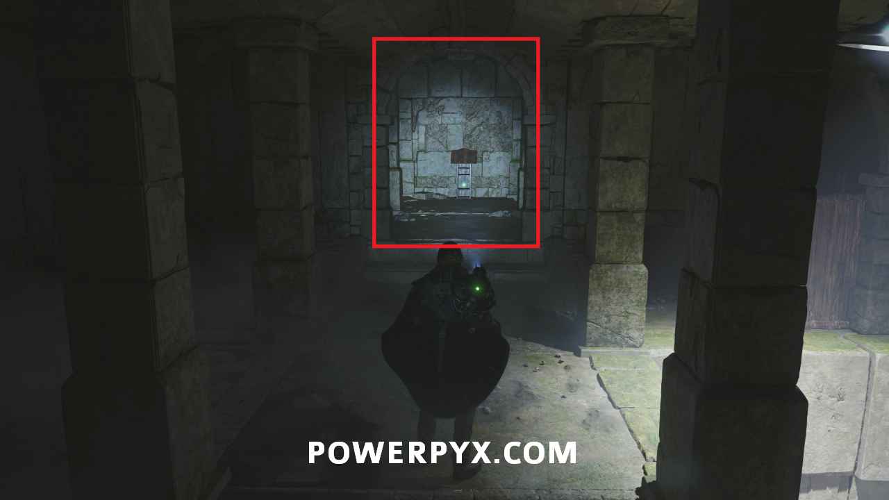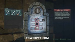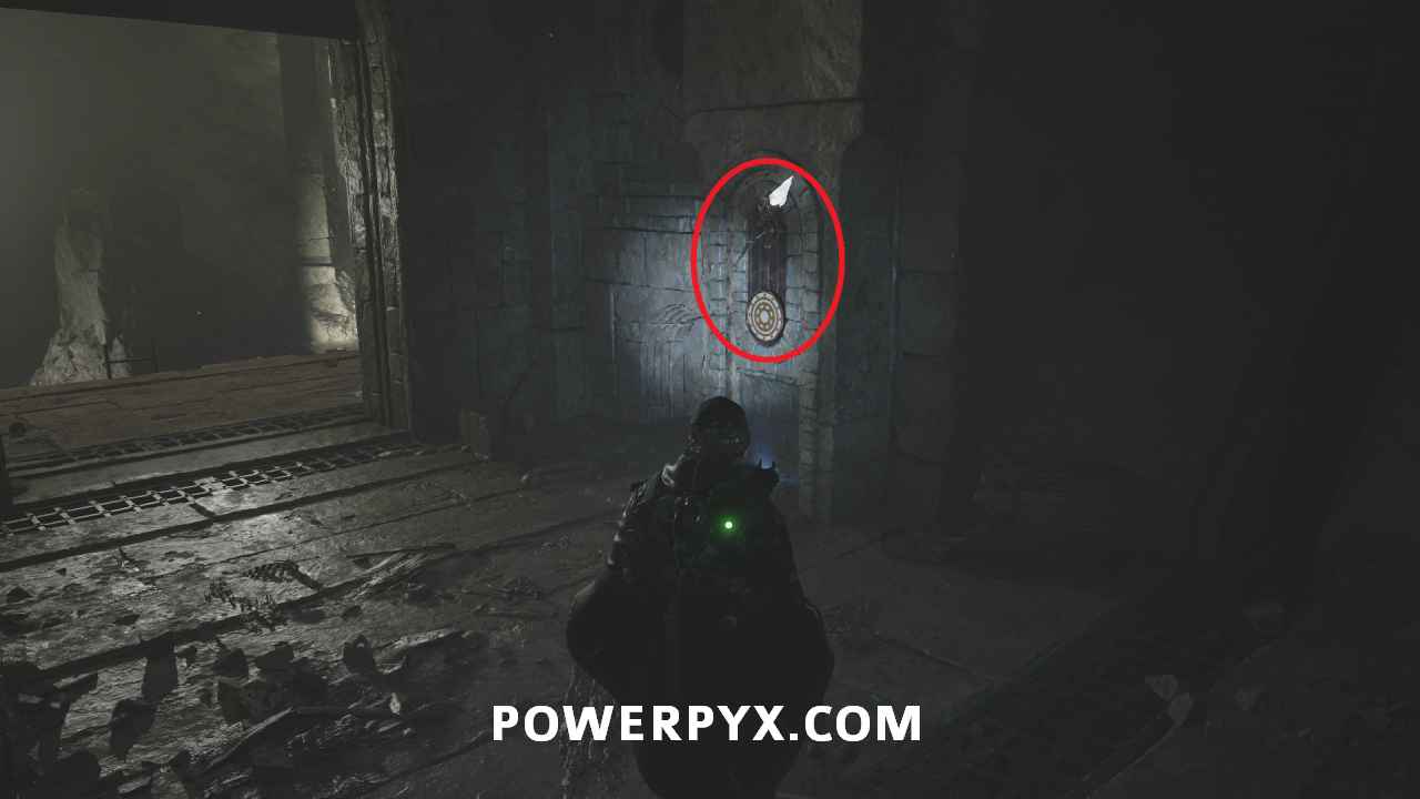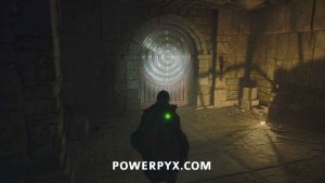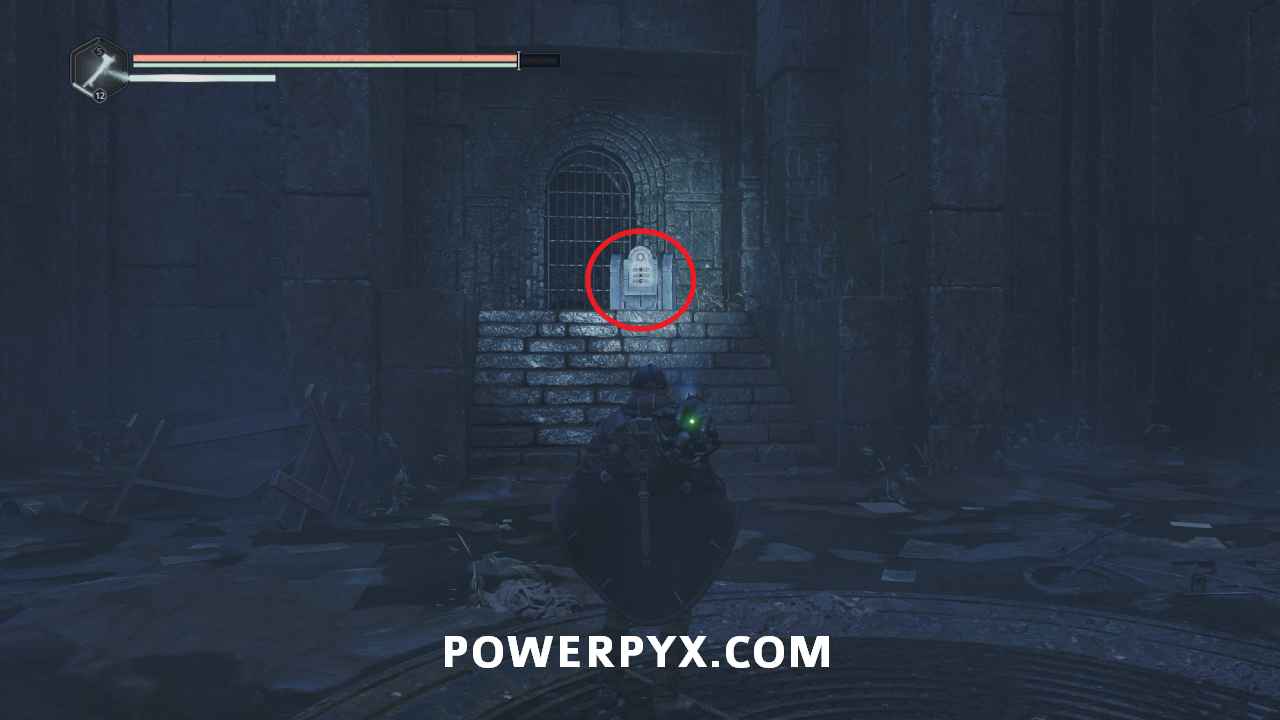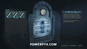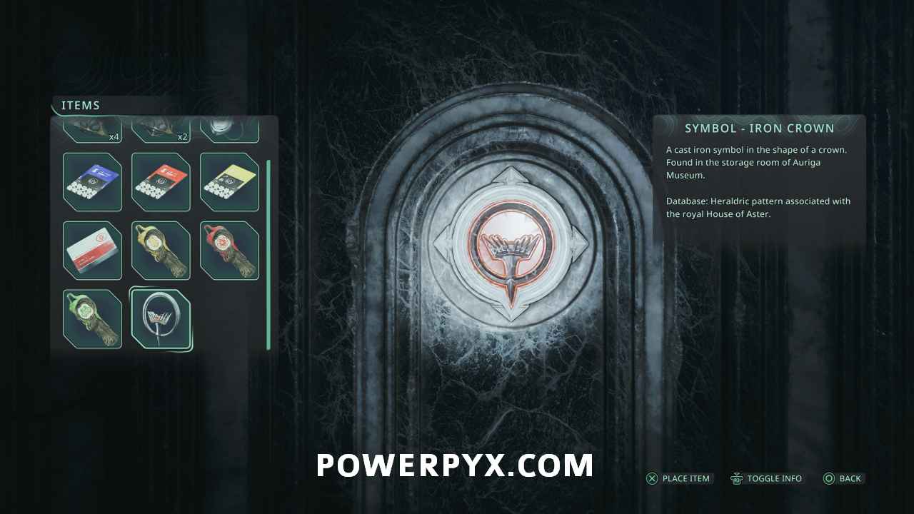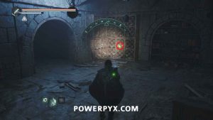 Go back to the entrance of the area in the room with the Hollow statues and on the south side is a doorway. Interact with it and place the Symbol – Iron Crown to open it, completing the mystery.