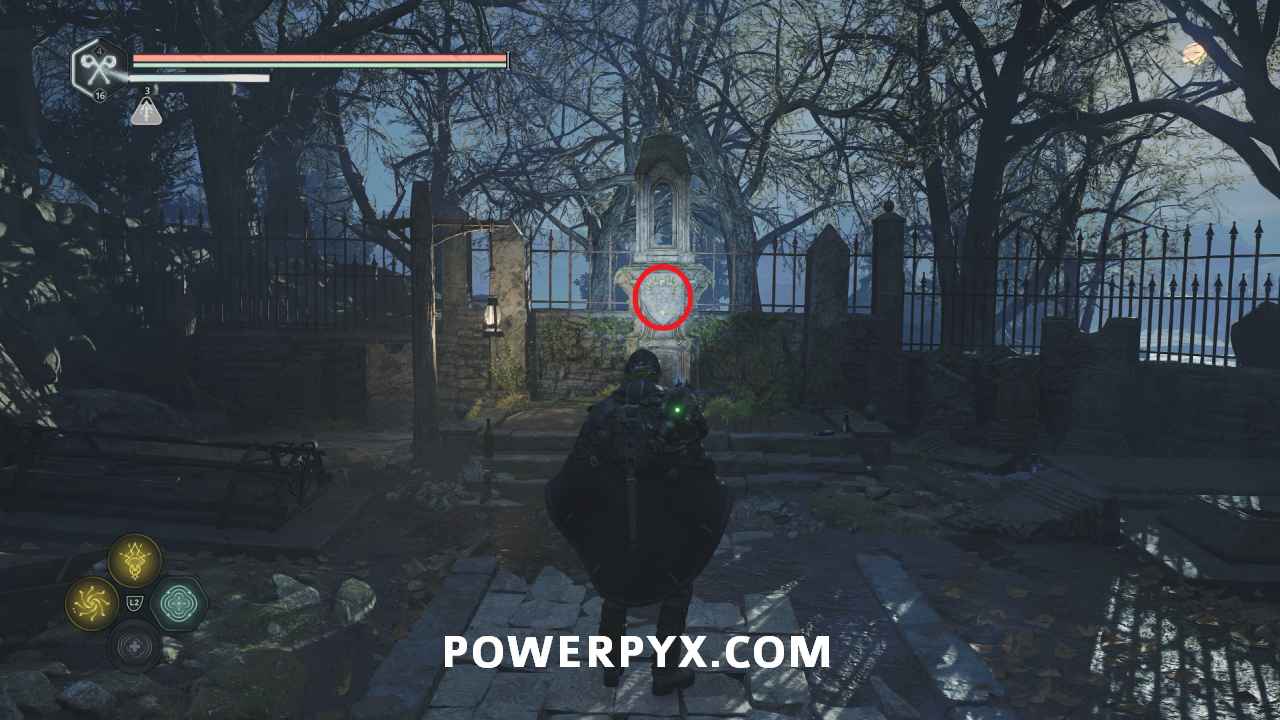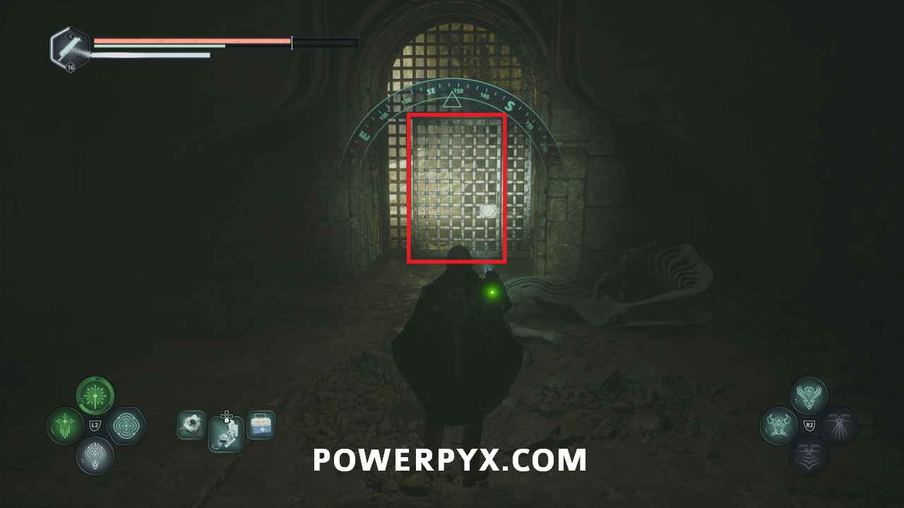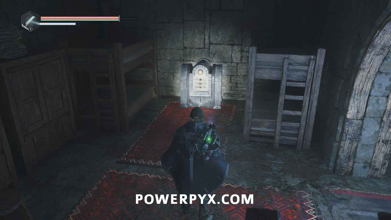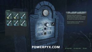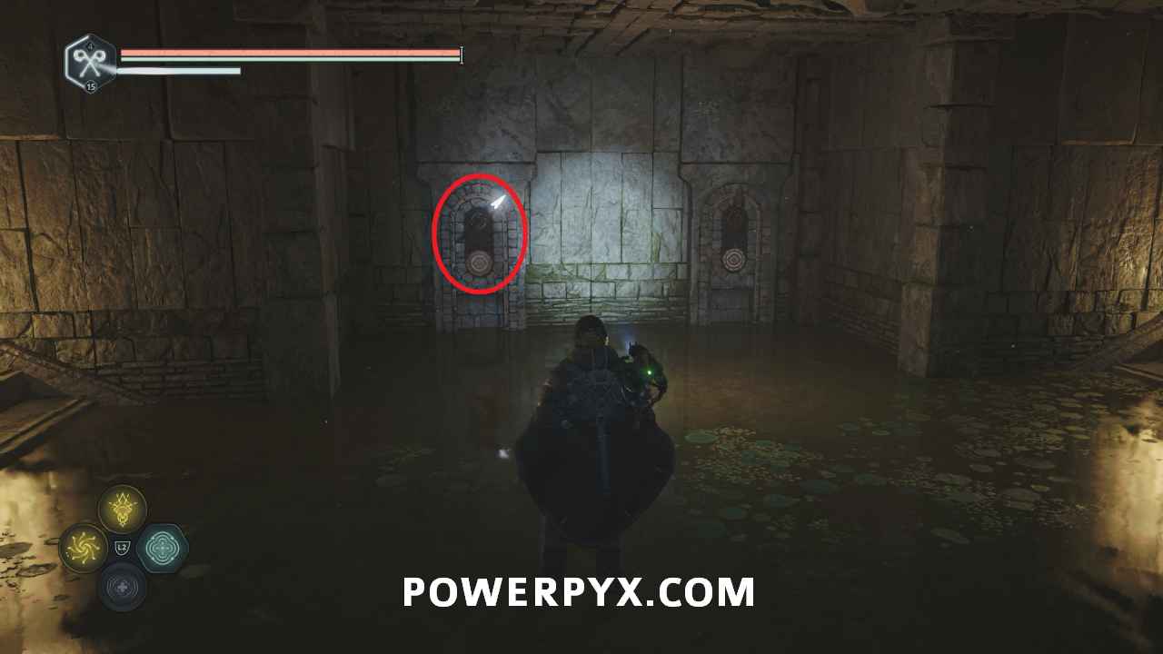 Go back to the entrance of the area in the room with the Hollow statues and on the south side is a doorway. Interact with it and place the Symbol – Iron Crown to open it, completing the mystery.