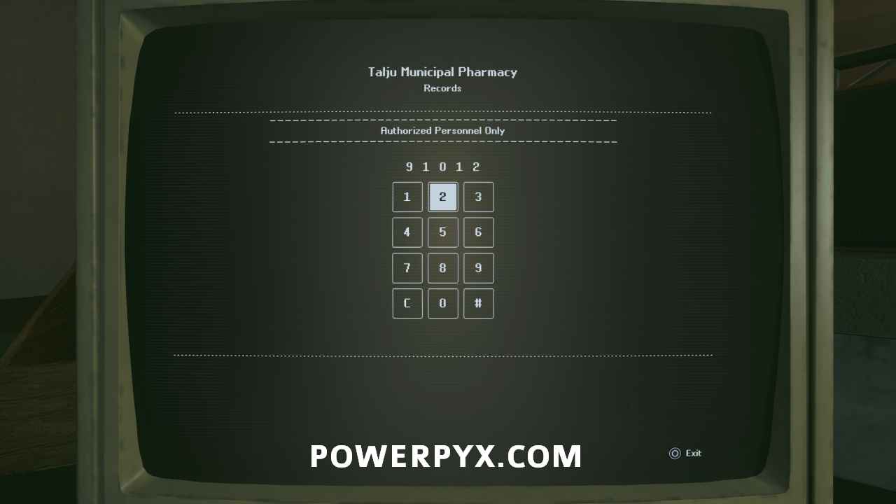 Go to the Pharmacy in the center of town, and in the parking lot after completing the story events open the back door. Interact with the computer on the pharmacy desk and enter the code 91012 to access it. Read the single entry to complete the mystery.