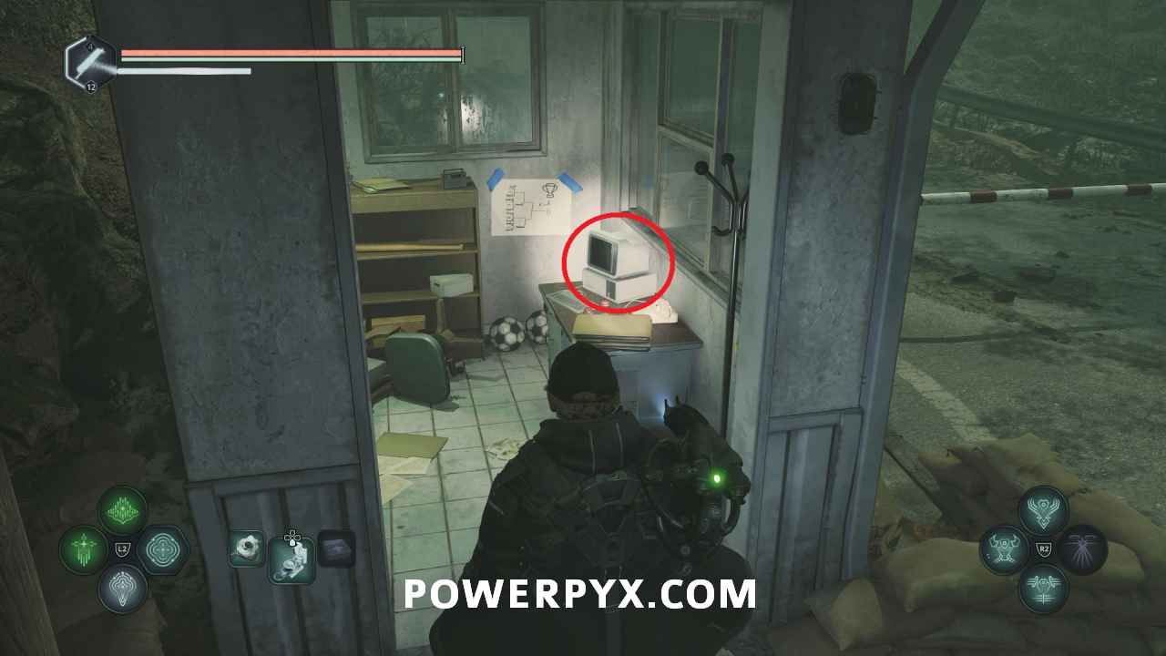 From Jova, go northeast toward the locked camp area. Interact with the keypad left of the gate and enter 151991 to open the gate. Interact with the computer in the tent on the right and read the entry to complete the mystery.