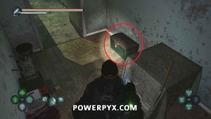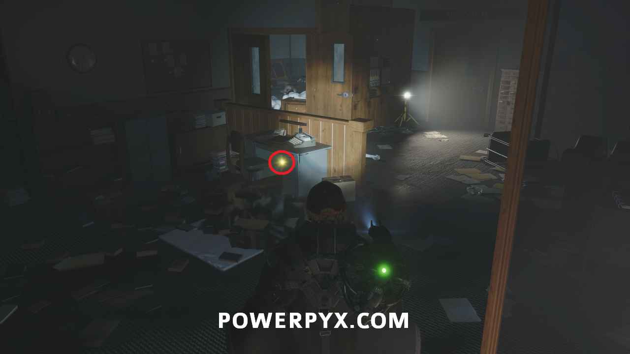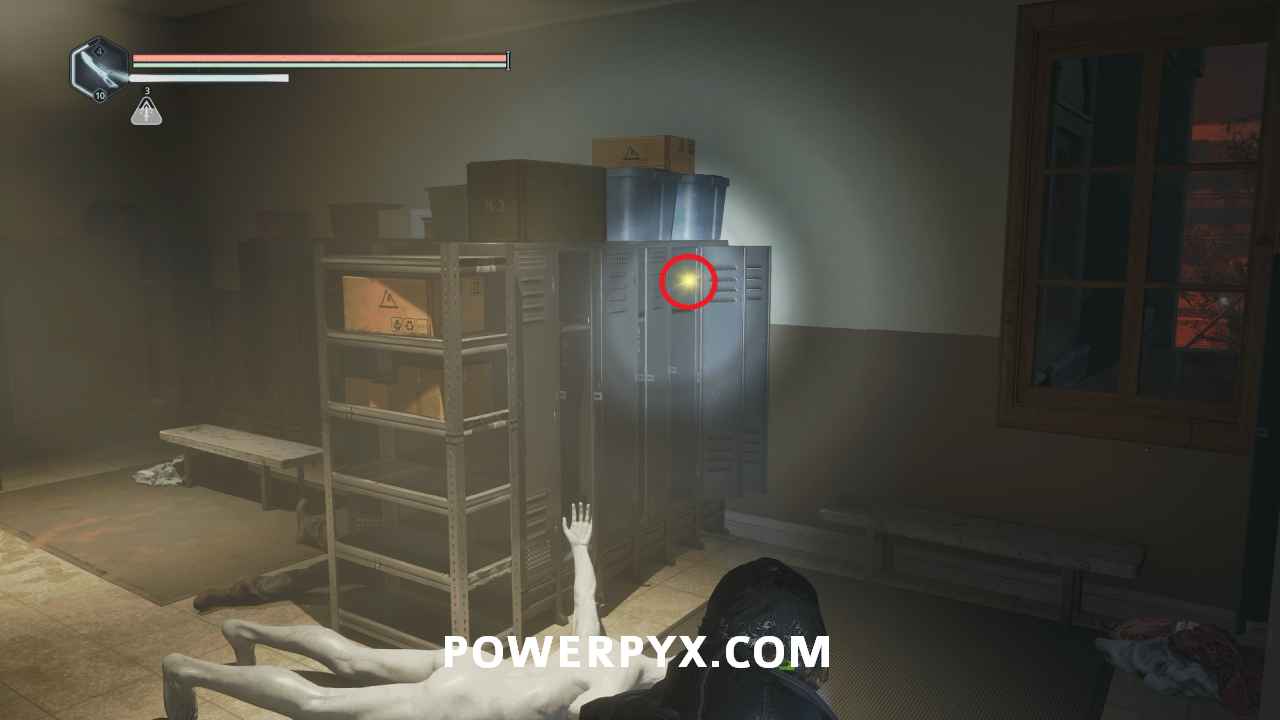 Defeat the enemies, then go around the left to find Note – Blackmailed and Keys – Car sitting in the locker.