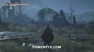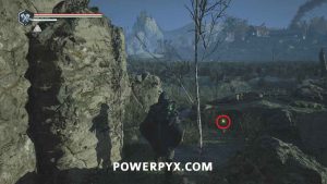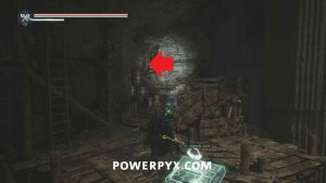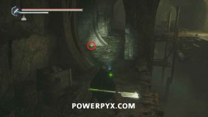 go to the location with the wooden mechanisms used to drain the water. Drop down to the right side of the mechanism where there is a ranged Hollow on a wooden walkway. Beside it you can pick up Lymbic Rod – Terror, W.