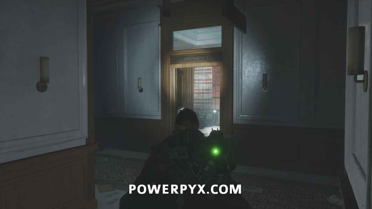 Follow the path upstairs until you reach the three-way split in the hallway. On the right is the room with the “Secretary” label with a woman sitting inside. To her right is a desk where you can pick up Keys – Ministry Car which starts this mystery.