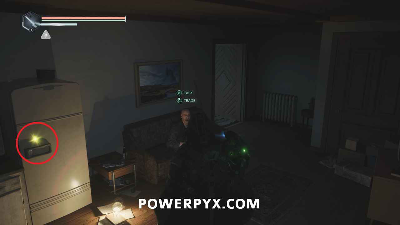 In Jova from the building Rebecca is located in go to the one southwest with the white graffiti on the front. Go up the ramp and into the upper floor to get inside, and down to the first floor and interact with the fridge to obtain Bottle of Mead – Nearly Empty and start this mystery.