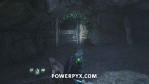 Complete Mystery #9: Observation Outpost 08 to open the gate to the locked camp. Go through the camp and enter the cave on the left. Go down the hallway to the right defeating the enemies to find two torches on the wall. Rotate both of them so that they are lit up.