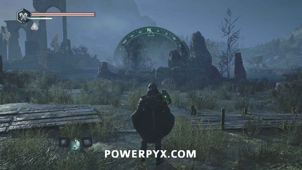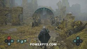 Continue following the path to the end where there is a door you can go through, then up a ladder and unlock a door in a building that allows you to more quickly get to the nearby chest later. Look southwest where there is a path leading up and left past some ruins. Follow it all the way left to the end where there is a second set of ruins with some enemies nearby. Use the Key – Rusted on the chest in the ruins to obtain a Lymbic Polearm and Research Item: Flower Medallion completing the mystery.