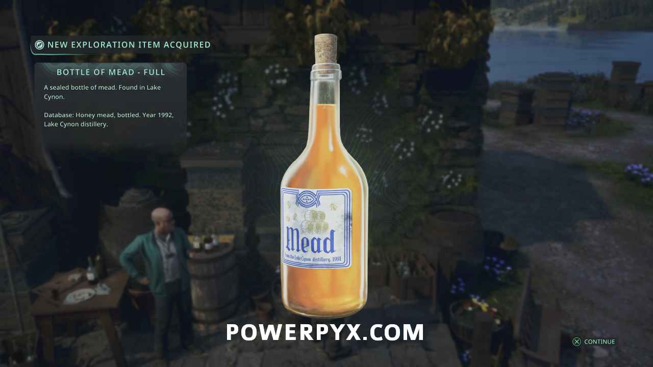 After Abbot Jaffer and Rebecca have moved to Lake Cynon after the events at Pathem Abbey, go to Lake Cynon to the building to the right of the area where you drained the water. To the right of where Abbot Jaffer is standing you can pick up Bottle of Mead – Full.