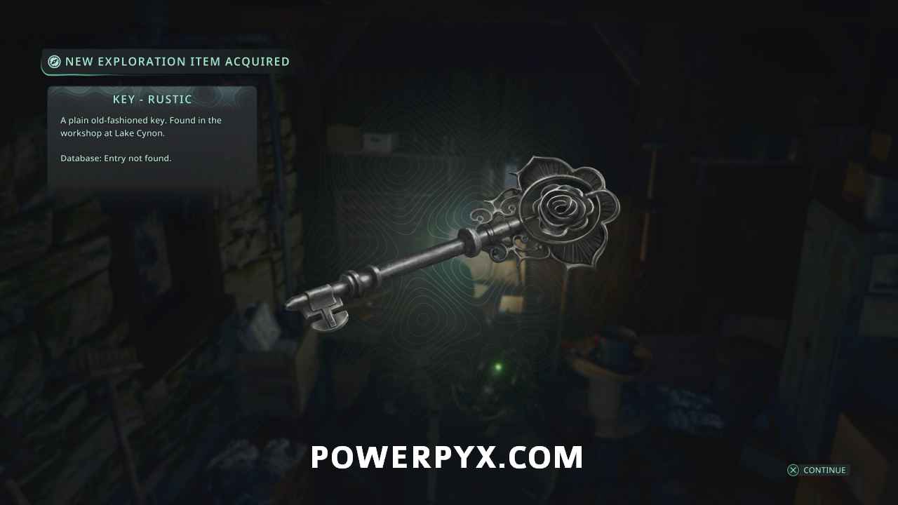 Follow the path southwest and into the room on the left where you can find a door. Use the Key – Rusted to open it, solving the mystery.