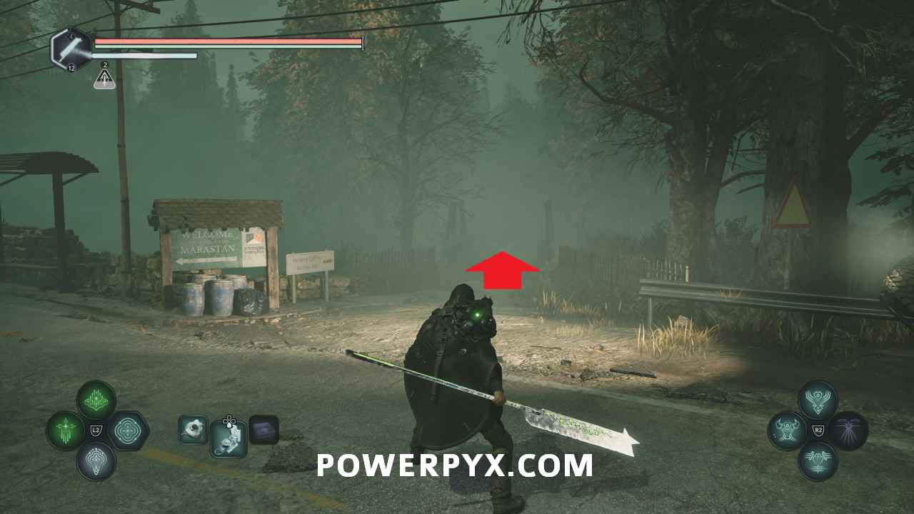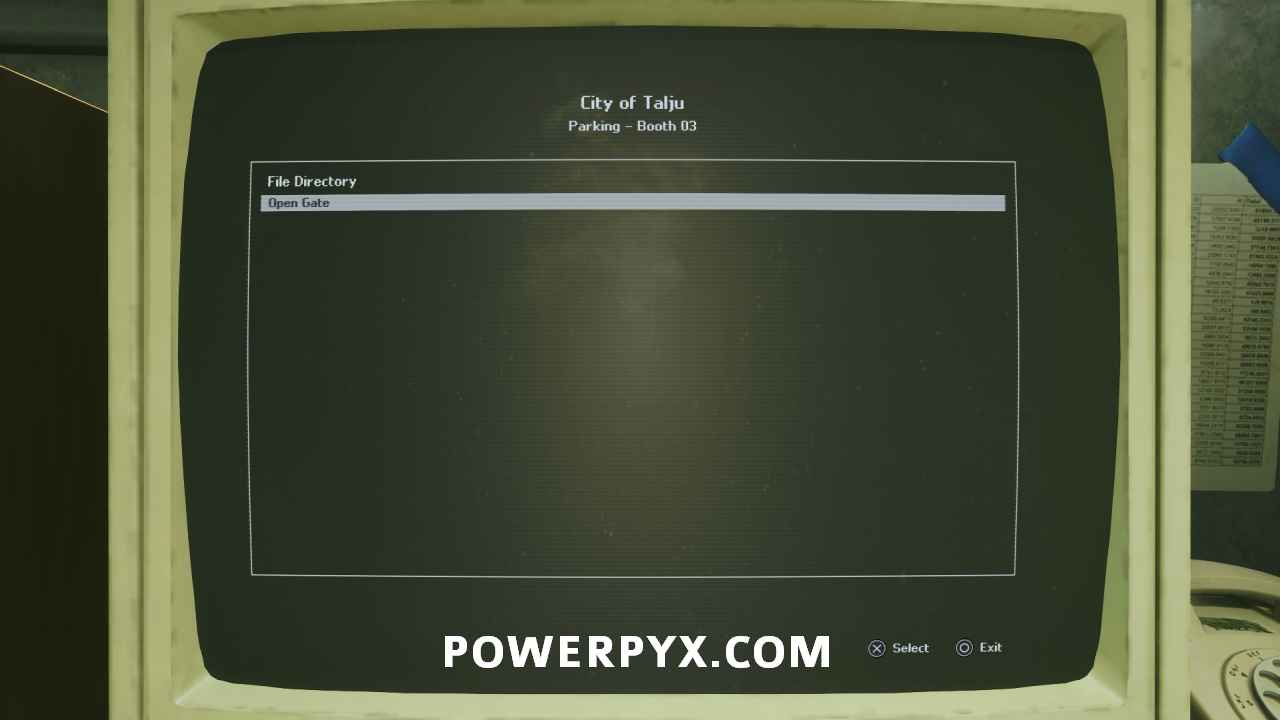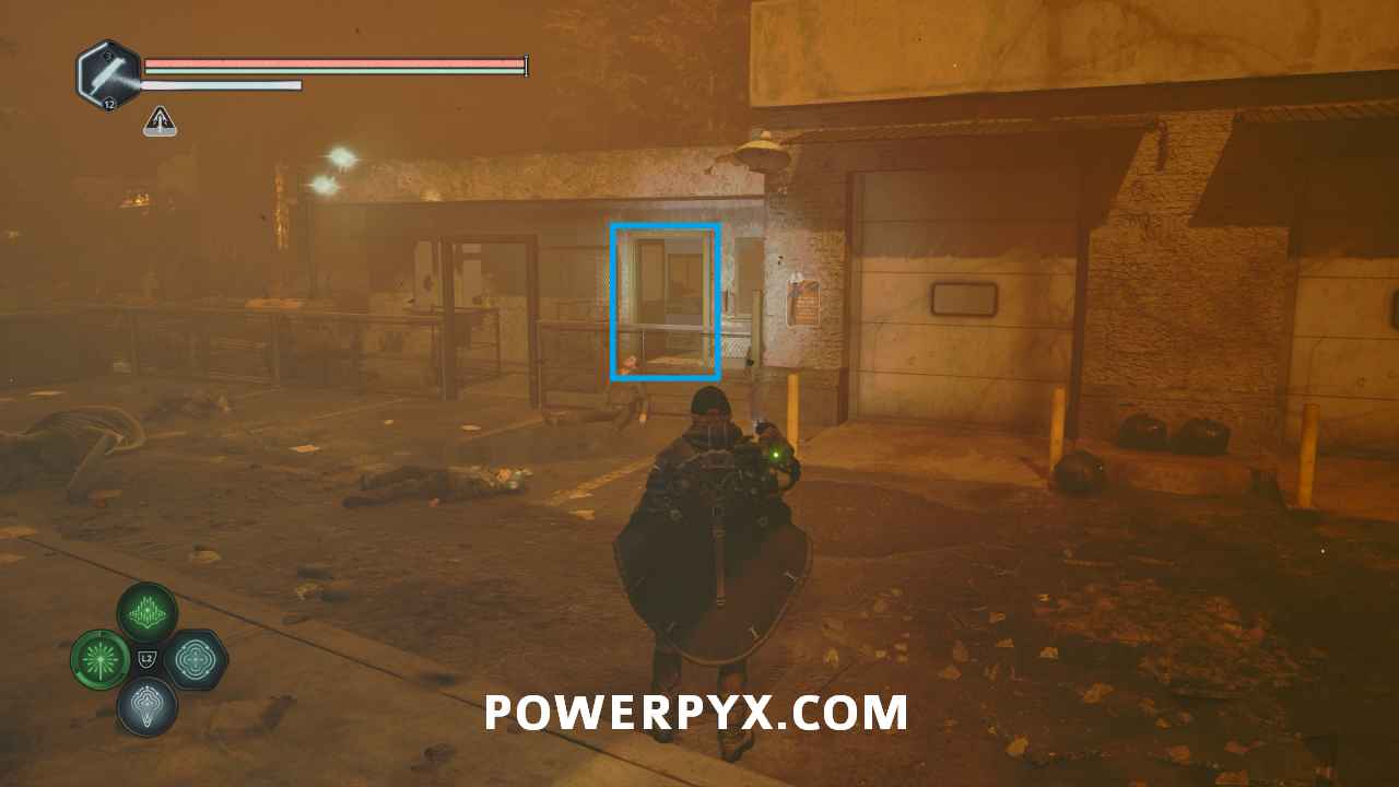 Go back to the town hall and speak with Caspian Fran, asking about the Symbol of the Screaming Face. He’ll give you the Key – Parking Lot. Go around the other side of the Pharmacy building again where you can see the large gate leading into the parking lot where there is an enemy inside. Open the gate with the key you just received, then interact with the computer and open the gate. Enter and defeat the enemy inside.