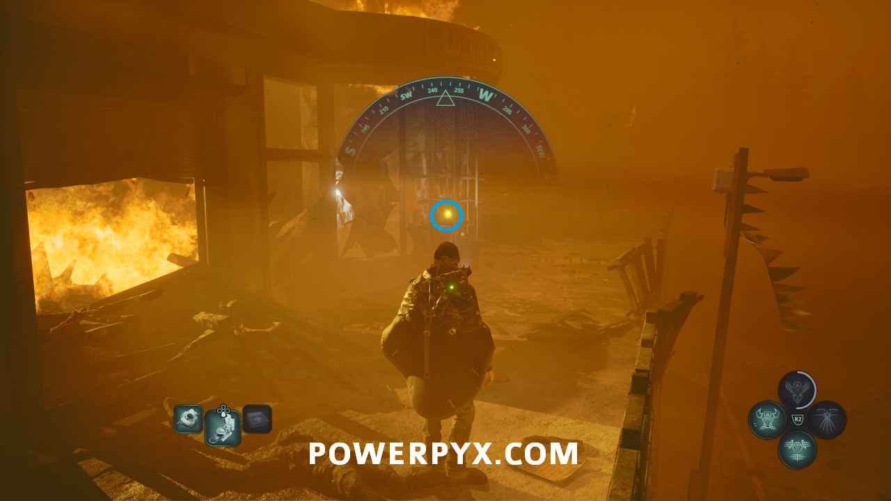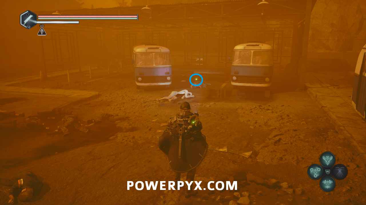 Good Deed #13 – 16: A Light in the Dark – This good deed is in 4 parts, and is what you need to finish in this area before continuing the story events. Go back to the APC and then make your way to the Town Hall (labelled 1 on the map). Out front by the door you can pick up 4 x Signal Flare. You are going to be giving these to people around the town to rescue them.