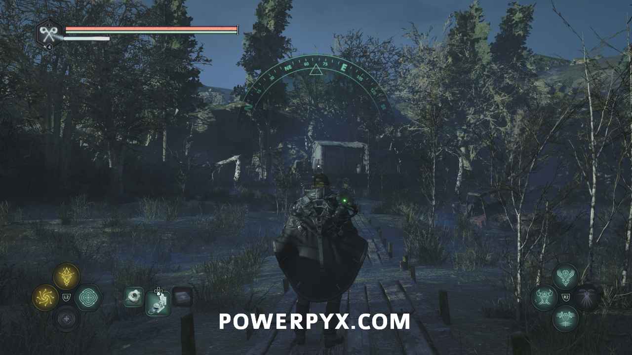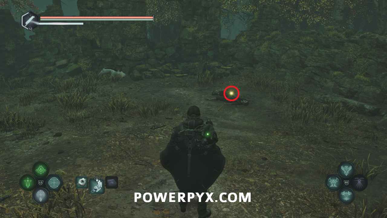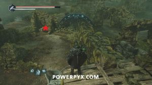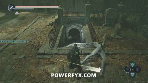 Research Item: Lymbic Core – Go back to the path into the forest and this time go left across the bridge and up the stairs. Go northwest toward the enemies, then northeast to where a single Hollow is standing by a cliff. Look down and you can drop to the cliff slightly below you. Go to the end of the tunnel where you can pick up Research Item: Lymbic Core and a Polearm of Terror.