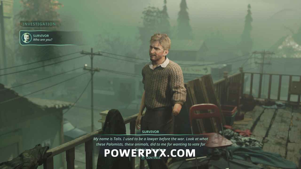 NPC #12: Caspian Fran – Go inside the town hall and speak with the first man sitting on the chair, who is the person Caspian that you are looking for. While speaking to him he’ll give you the Walkie-Talkie that he wants you to give to his son when you find him.