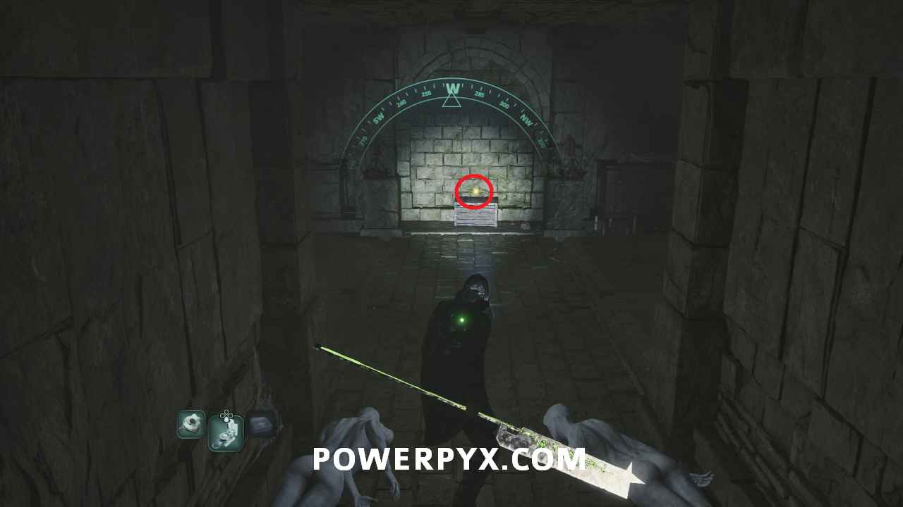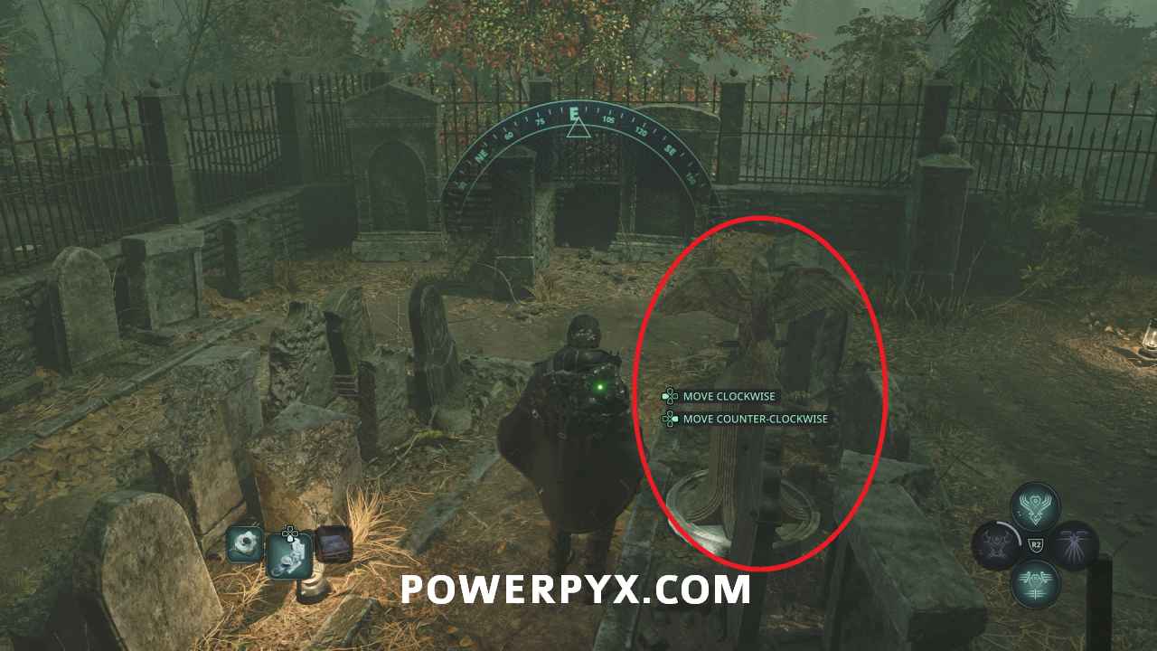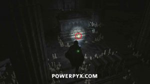 Now to continue the main objective, go back up to the church graveyard area where you may have spotted some interactable statues. There are six in total on the cemetary area, and you need to rotate them so that they area all facing EAST. When done correctly one of the tombs in the center of the area will open with a new path leading down.