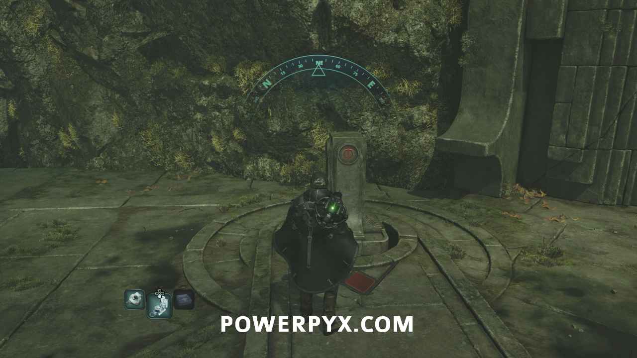 Now to finish the story events in the area, return to the APC and go north, then east through the woods. You come to a big door with a square on the ground you can interact with. Place the three Tablet Fragments: Square on the top right, Angled on the left, and Oblique on the bottom right. If you’ve completed all puzzles as laid out by the guide you’ll earn