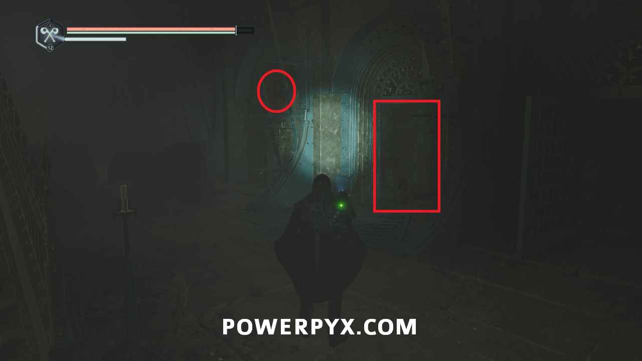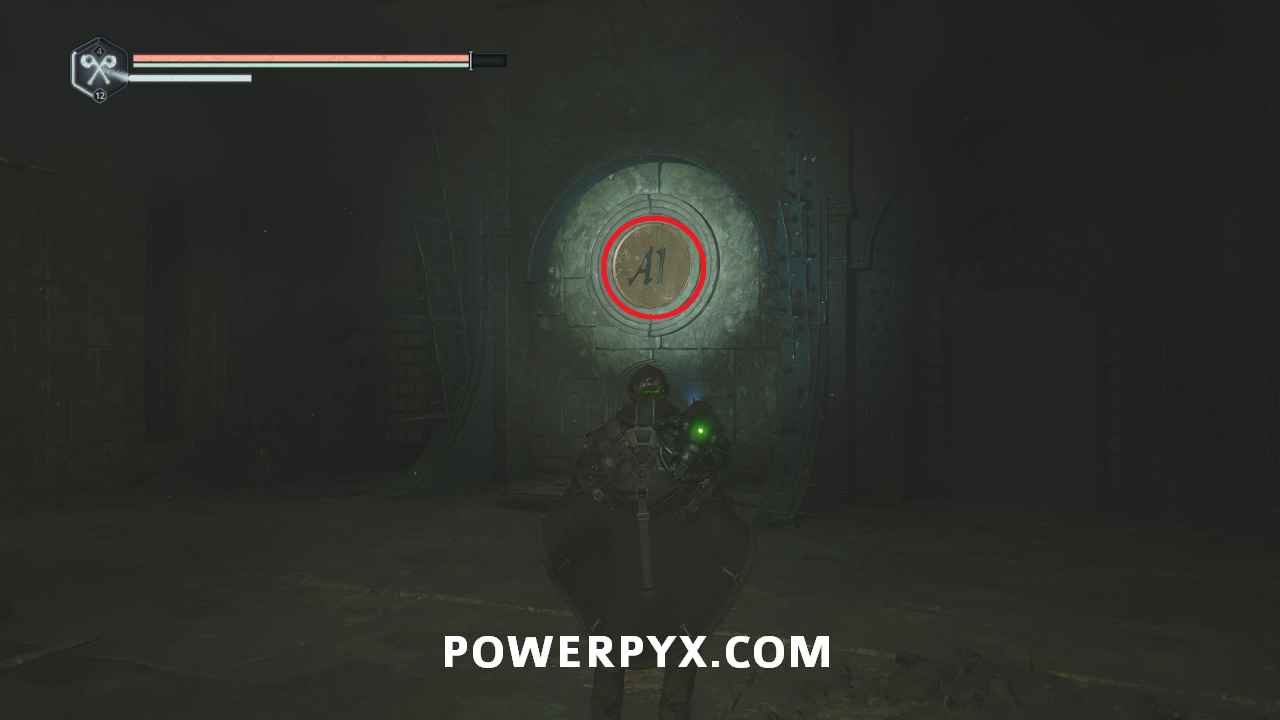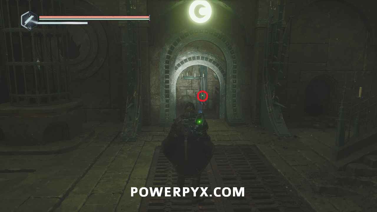 From where you drop down follow the path to return to the stairs and then go up this time. Continue into the room where there are the six cages on the lower level with switches inside. The puzzle here involves stepping on pressure plates that damage you and raise the cages, then making it back in time to pull the lever. Make sure you have healing items equipped and keep your health near full before stepping on plates, as they’ll deal around half your health in damage unlike the one required to enter this room. You’ll eventually pull all levers, so don’t worry if you do them out of order accidentally. Note the cells in the area also open based on the plates you step on: plates number 4 open all cells in that section, while other plates open the two cells beside them, so watch for enemies that come out of the cells while you go through the area.