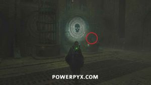Go up the central stairs and then to the right. On the left of the next stairwell step on plate B2, then run back down and pull the Skull lever.