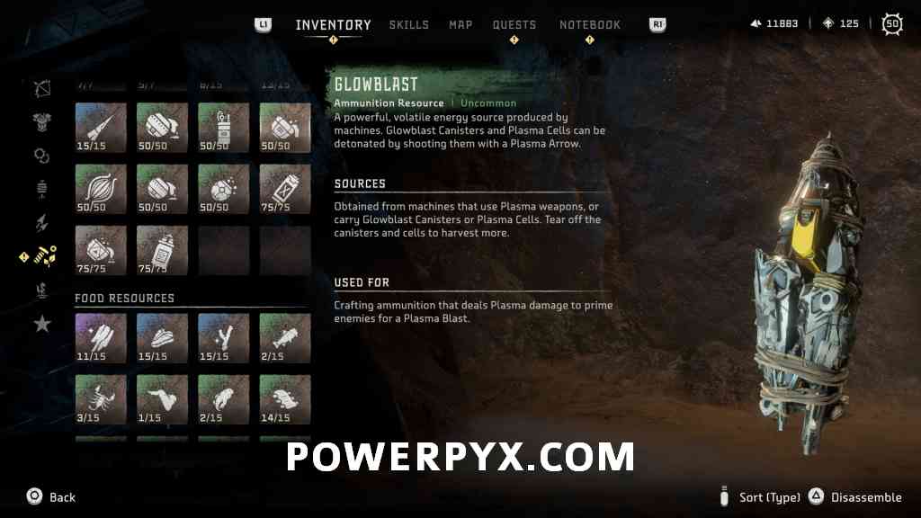 Item Description: A powerful, volatile energy source produced by machines. Glowblast Canisters and Plasma Cells can be detonated by shooting them with a Plasma Arrow.