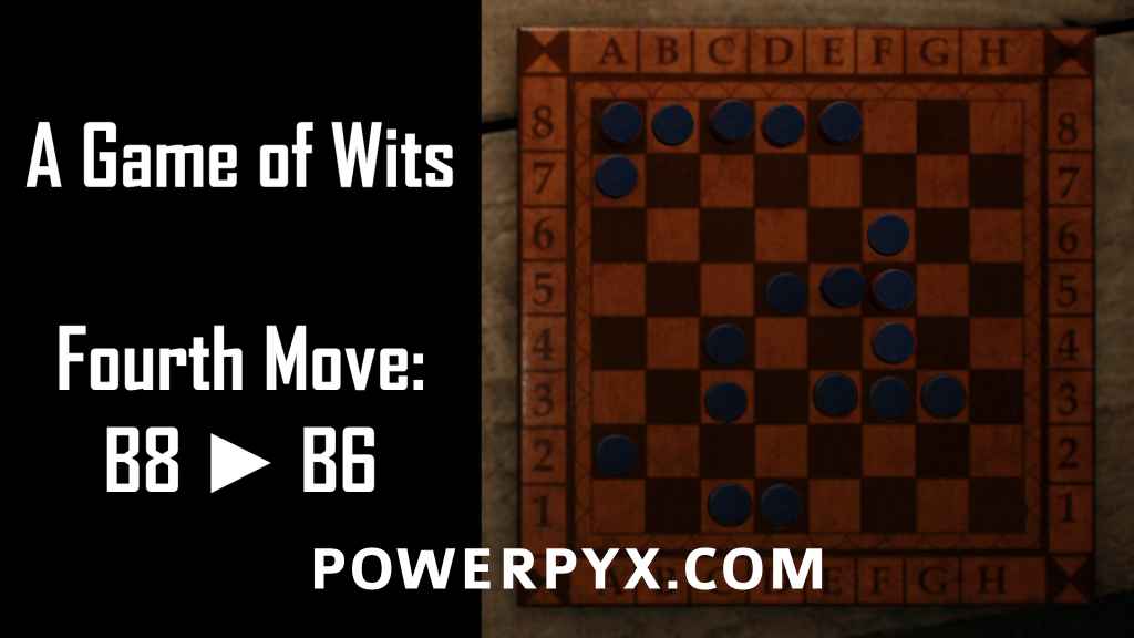 Read the notes, and you’ll see that the combination to the safe is hidden in a Mak-Yek puzzle. With the rules you’re given and the board in its current setup, it is possible to make four moves to capture every piece on the board, and that will give you the combination to the safe.