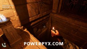 Head back to the chasm, but this time head west. You will boost Gina up to a higher platform, and she will use the mirror to direct light to keep the scorpions at bay while you jump up and hang from a ledge, shimmy all the way to the right, then swing from a bar to land on the ground on the other side. Gina will shine the light on you as you slowly move towards the stairs and meet back up with her. Head into the dark hallway to the north, then take the left fork at the T, then go up the stairs to the north. When at the top, crawl under the gate and you’ll find yourself face to face with the Protector Stele.
