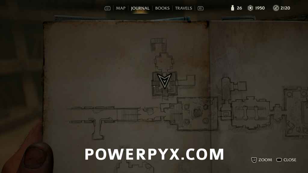 Head west up the stairs and then into the short hallway to the north to find an artifact.