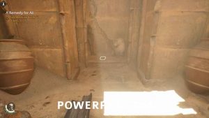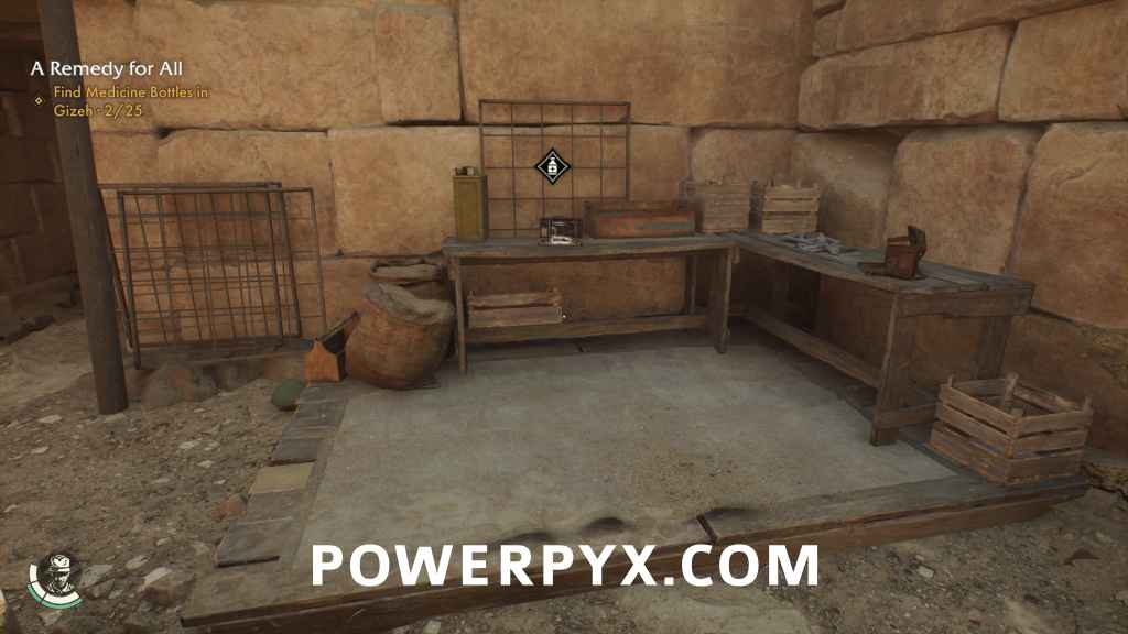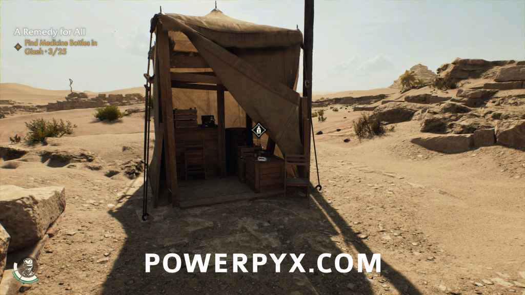 If you haven’t done so yet, trade in 20 of your medicine bottles for the books Moxie II & Shaping Up II. This will leave you with 10 medicine bottles to use in Sukothai. From here it’s time to head to the main mission waypoint and bring Gizeh to a close. In the search area, what you’re looking for is the large green tree growing out of barren sand. Just beneath that tree is a crawlspace that leads into the pyramid. A breakable wall seals the entrance, so head to the tent to the east to grab a sledgehammer.