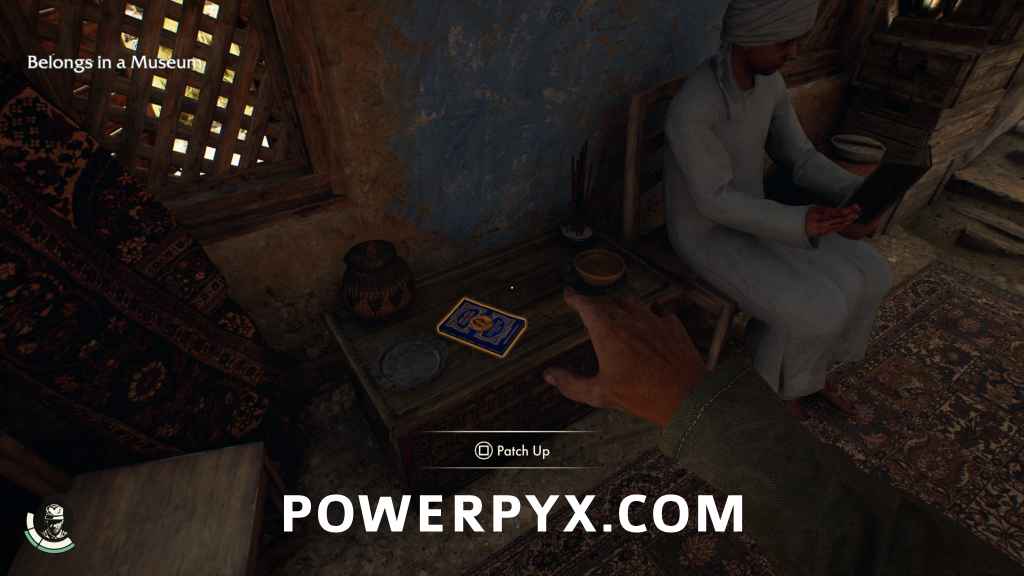 In the house is a book, and in addition you can pick up a senet piece from the coffee table inside and bring it to the two men by the senet board outside for 15 AP.