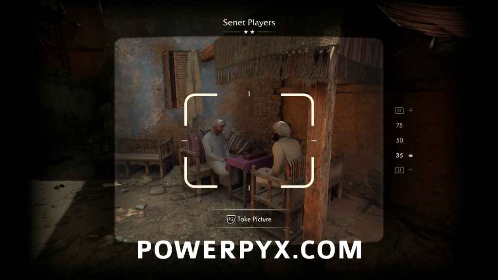 Go north down the stairs, then east up another set of stairs to take a photo of the Senet players.