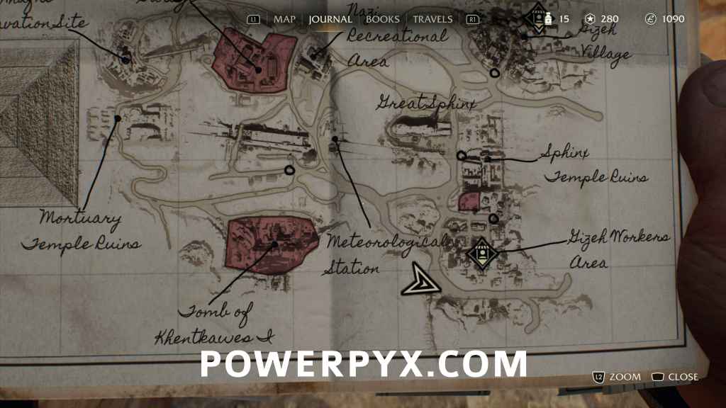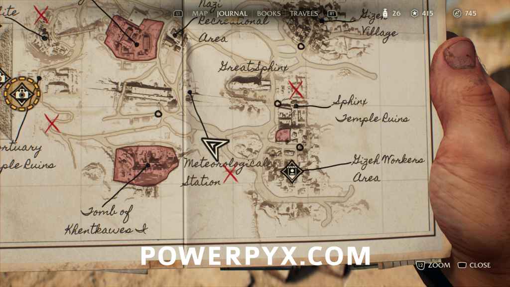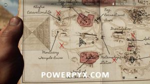 After getting the lighter, there are a number of collectibles in the area that you should grab while you’re here. As you are wandering through Gizeh Village, its worth mentioning that any time you hear someone call you over because they work for Nawal, you should go and talk with them as it will usually unlock a mystery or other fieldwork. That will happen in Gizeh Village with a man telling you about an abandoned camp in the west surrounded by wild dogs, beginning the Seat of Eternity Mystery in your log. We’ll come back to this one.