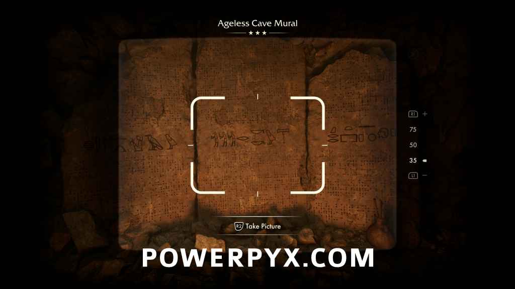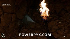 Keep going into the cavern, careful of the chasm on the left side of the cave. Proceed until you find a fourth mural on the right side of the cave. Light the brazier and take a photo.