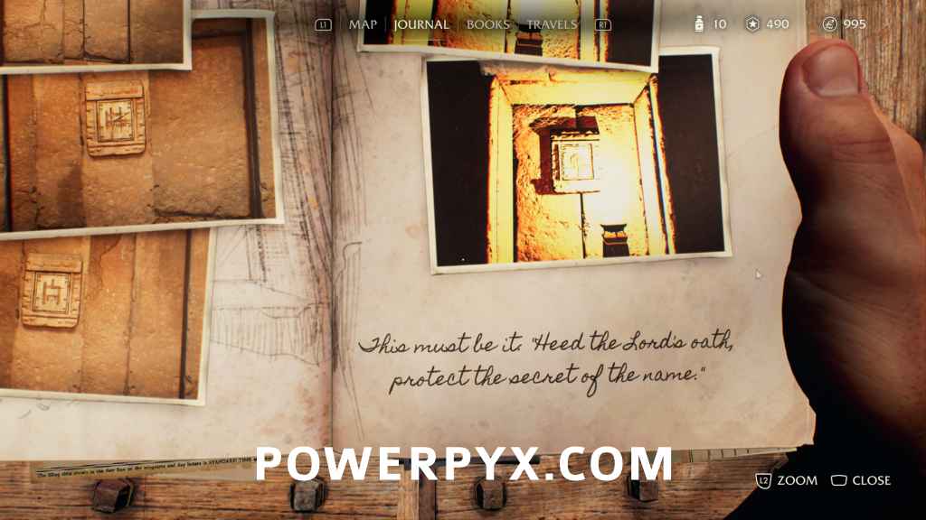 Then take a photo of the Adamic panels in the room. When you take the picture, they will be labeled as “Strange Symbol Tablet” at first but once Indy reads Dr. Lombardi’s journal he recognizes the symbols as Adamic. He is also able to translate the words and they will be relabeled in your journal with their translation.