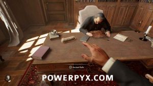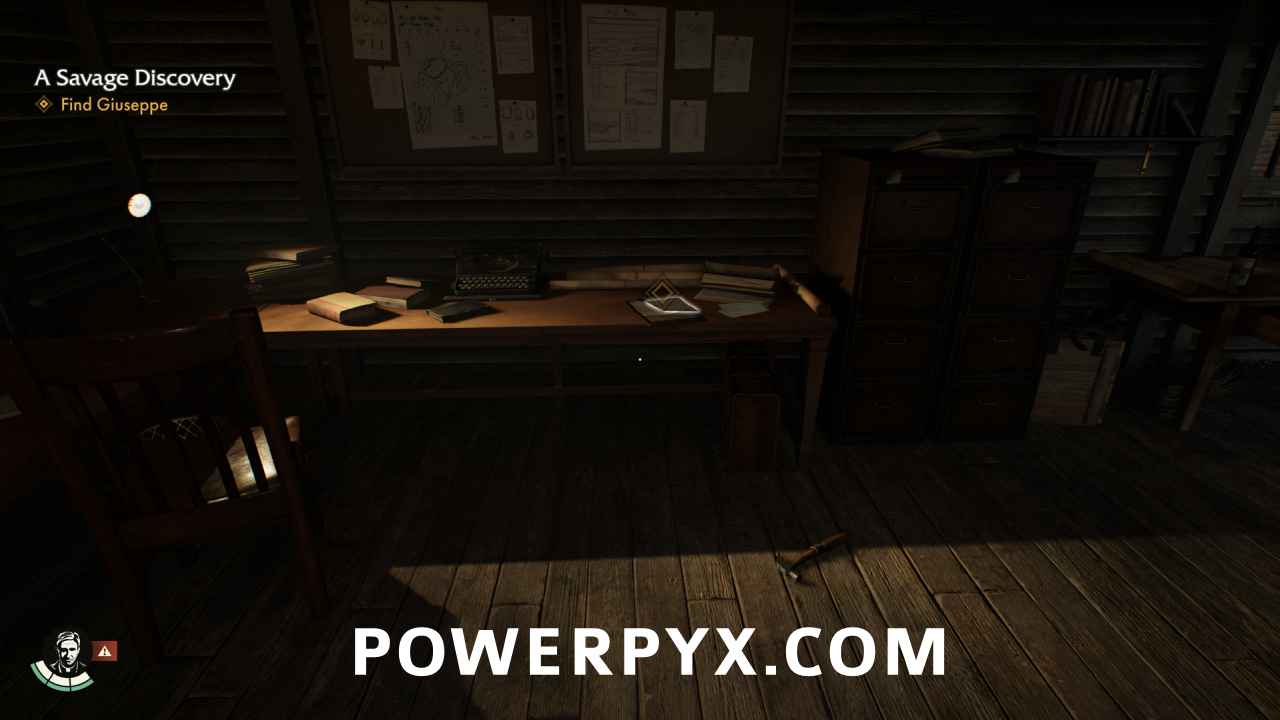 In the secret passage beneath the library, this will be on the desk with the skeleton of Father Crescenzo.