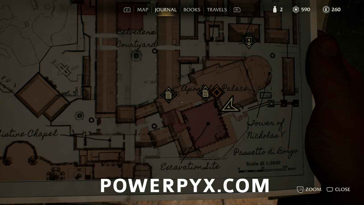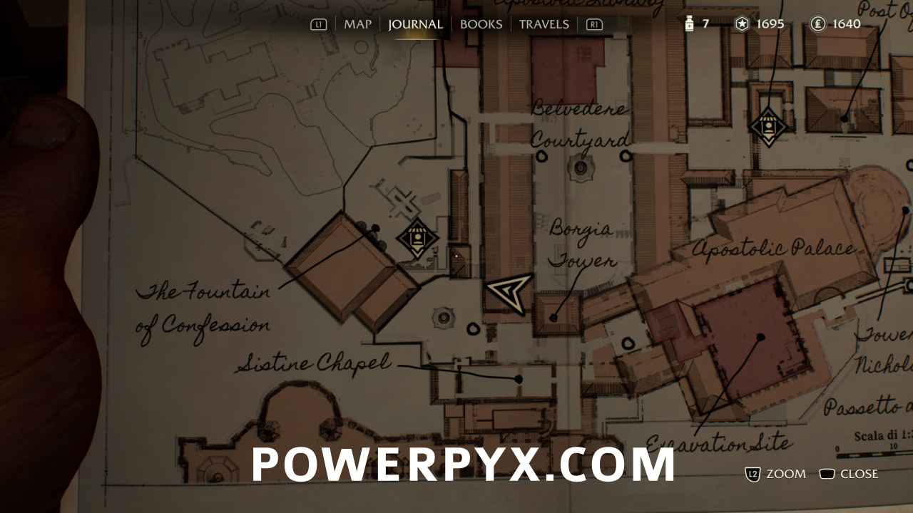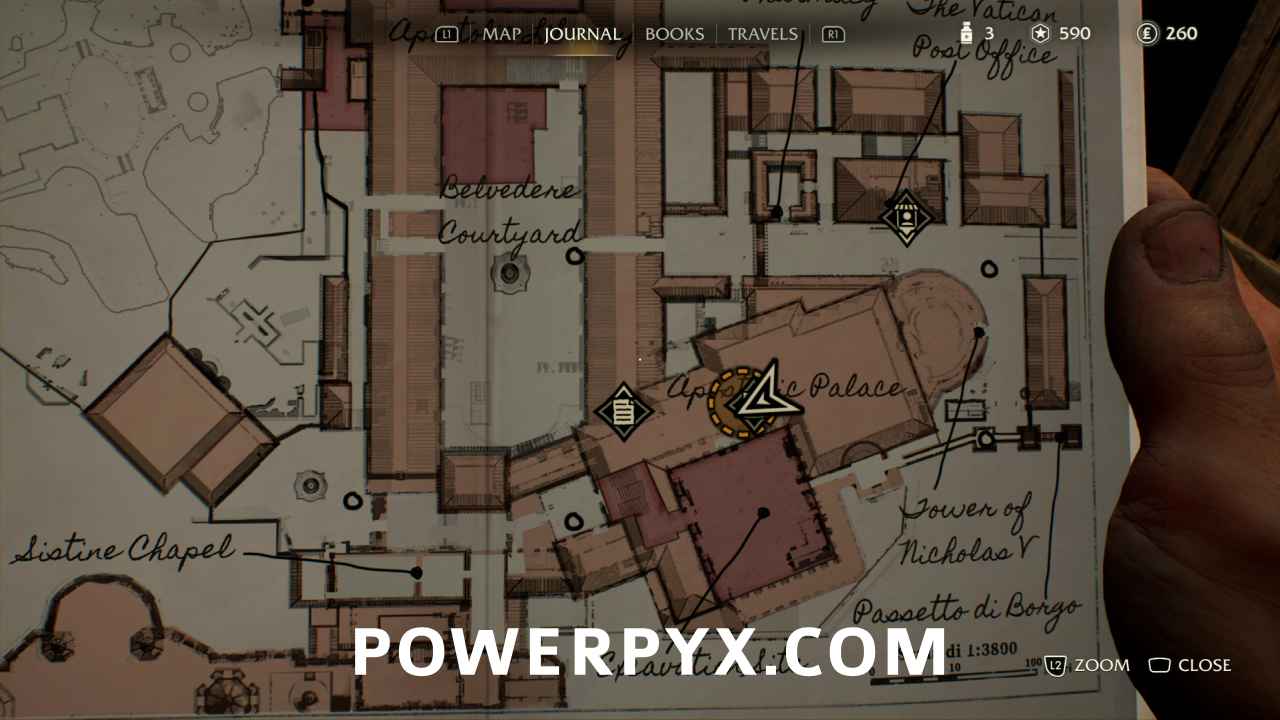 Inside the Apostolic Palace in the office west of the main stairwell. Complete the mystery A Snake in the Garden to gain access to the letter.