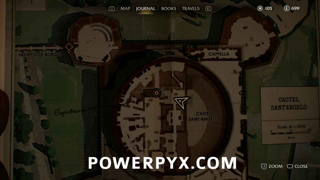 Next to the Courtyard of the Angel, go into Sale di Clemente and look on the desk to find this note.