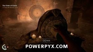 All around the room you’ll hear machinery and stone grinding as the four pillars around the room slide open to reveal a part of it that spins with symbols carved into each face. Above this on one side is an animal. You will need to choose the correct symbol for each animal: Scorpion, Crow, Horse, and Snake. Also keep in mind that occasionally cultists are going to wander in and try to murder you. To figure out which symbol goes with which animal, we’ll use the Cylinder Roll. Approach the console, and you’ll now be prompted to insert the Cylinder Roll. Press left or right on the