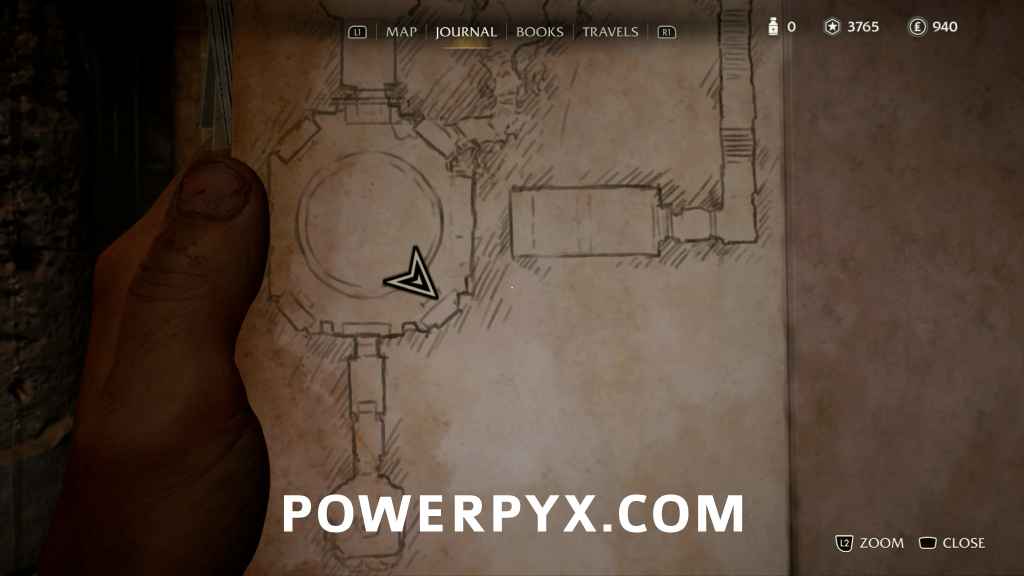 When holding the Cross Scepter, you’ll be able to hit :r2: / :rt: to bring up the inscription so you don’t have to go looking in your journal for it. Also, all the circles that also have a cross symbol will now show an interaction prompt when you are close, allowing you to plant the scepter and use it to turn the circle to the direction indicated by the cross symbol. At first glance this seems like a simple puzzle, just turn the circles representing Halygast and Aethopolis to the right directions. The problem is that there’s a key piece of missing information you’ll need to solve these puzzles.