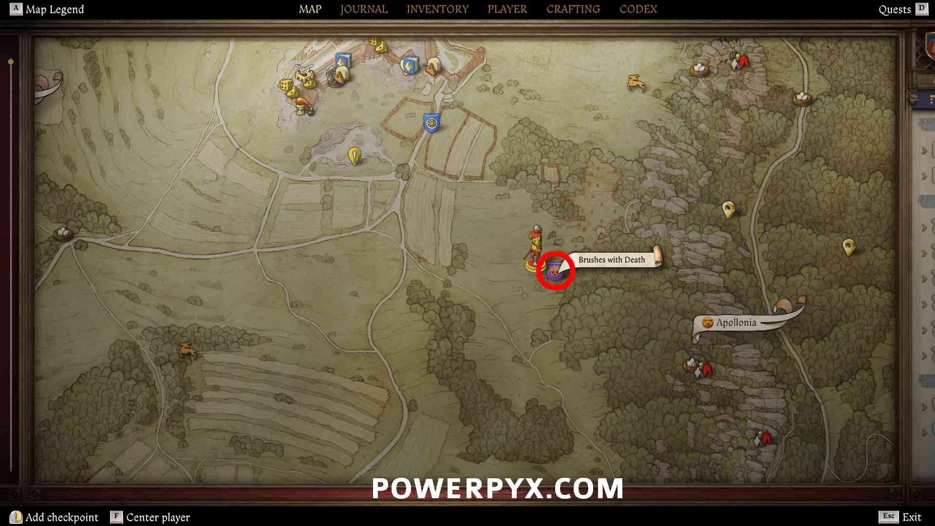 To start the Brushes with Death DLC you must have finished Main Quest 6: For Whom the Bells Tolls, which opens up Trosky Castle. After this, the DLC will be marked by a purple icon in Trosky region, slightly southeast of Trosky Castle: